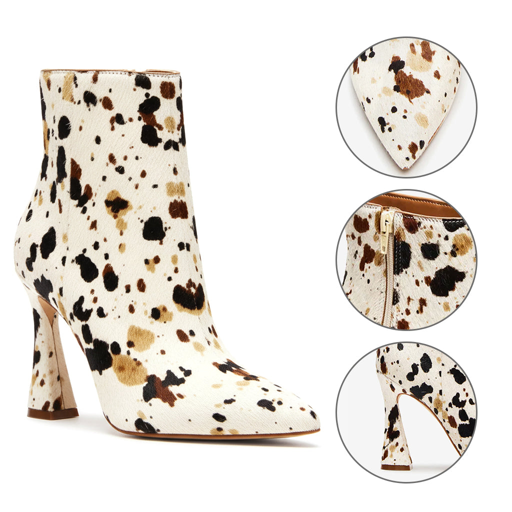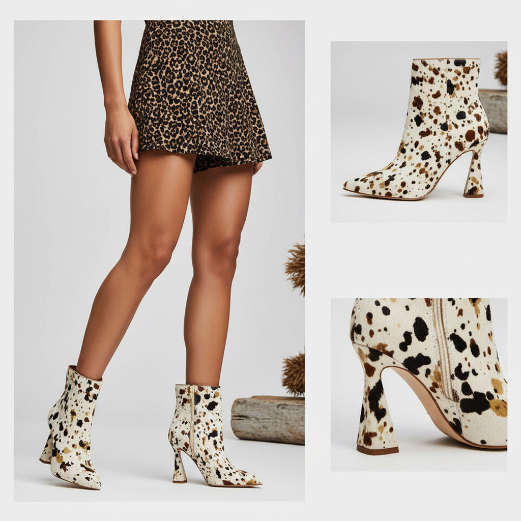 Our Stylish Women's Ankle Boots feature a chic pointed toe design that elevates any outfit, perfect for both casual and work settings. The unique graphic print accents add a touch of fashion-forward flair, making these boots a standout piece in your wardrobe.