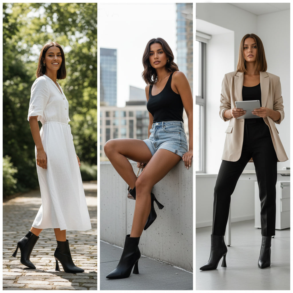 The versatile zipper closure allows for easy on/off wear, enhancing practicality. These boots are ideal for all-season wear, seamlessly transitioning from summer outings to winter gatherings.