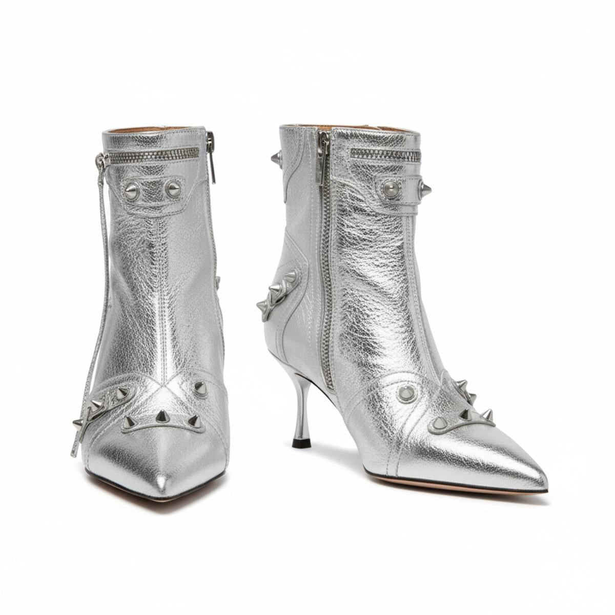 Discover the perfect blend of style and comfort with our Stylish Women's Ankle Boots. Crafted from premium full-grain leather, these boots showcase a unique fringe and studded design, ensuring you stand out at any event. The elegant pointed toe and fashionable 3.55-inch stiletto heel add a touch of sophistication to your outfit, making these boots perfect for parties, performances, or casual outings.