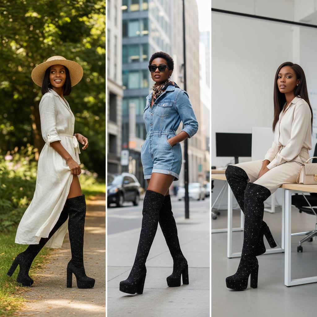 Size & Fit: The thigh-high silhouette reaches a boot height of 20 inches (50.8 cm), perfectly complementing dresses for upscale events. Available in various sizes to accommodate all your fashion needs, ensuring a great fit for your chic outings.