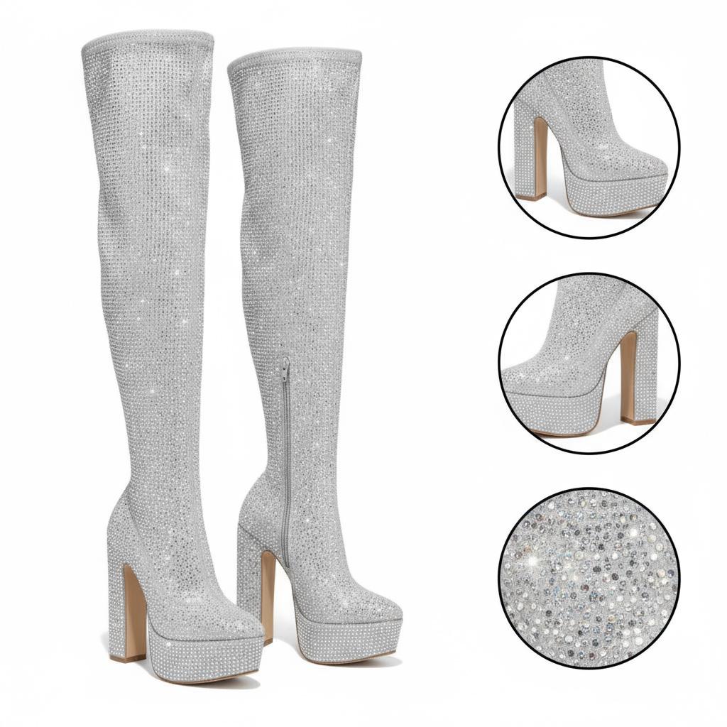 Stability in Every Step: With a chunky heel standing at 5.5 inches (14 cm), these boots provide enhanced stability without compromising elegance. The ergonomic design includes shock absorption technology, making them ideal for extended wear during parties and special occasions.