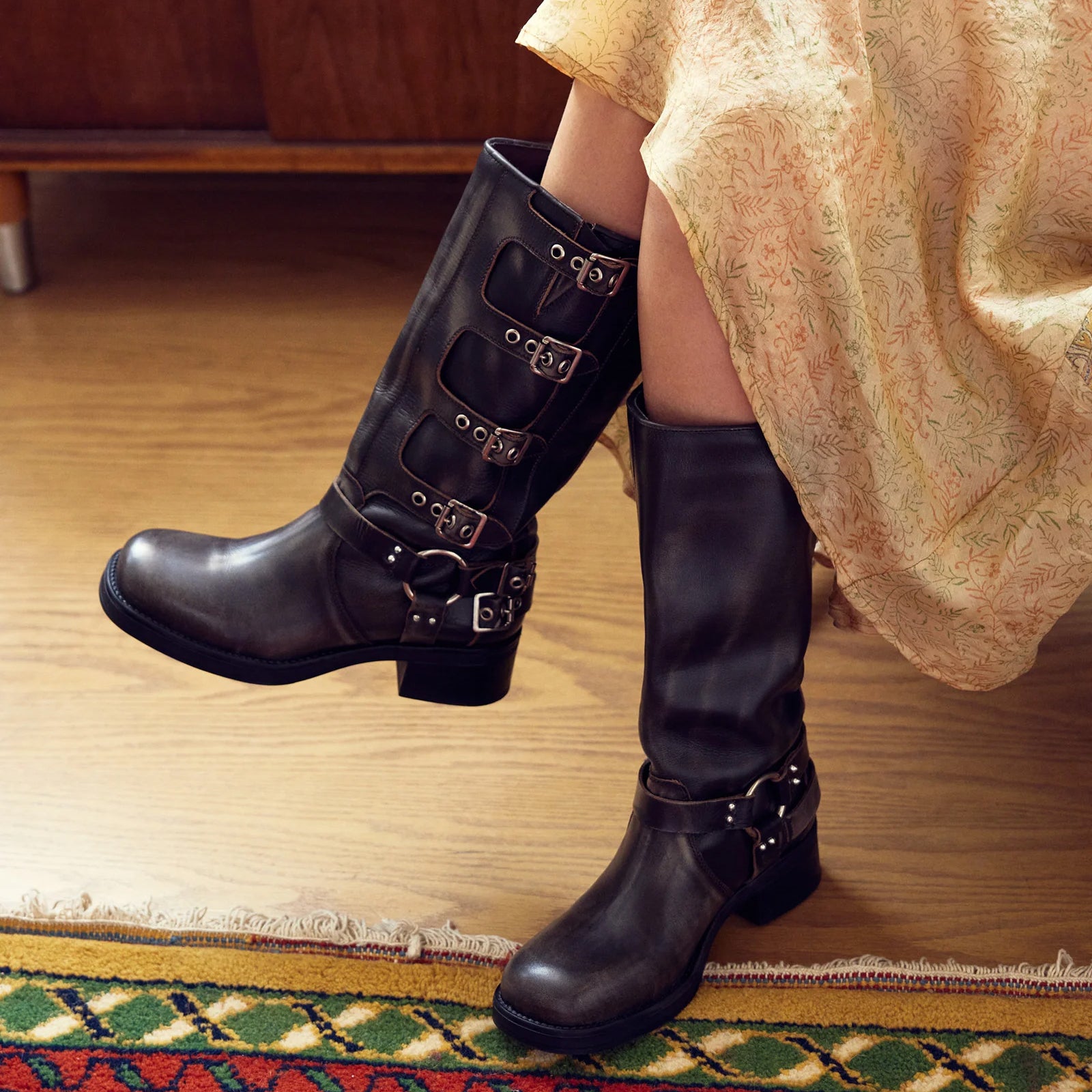 Unleash Your Style with Our Vintage Chic Mid-Calf Boots Step into effortless sophistication with our mid-calf boots, designed for the modern woman who values both style and comfort. Featuring a unique combination of retro aesthetics and contemporary detail, these boots are perfect for dressing up any outfit. Crafted with premium materials and a unique five-metal buckle and rivet design, they ensure you stand out while enjoying the ultimate functionality. Key Features: Size Information: With a heel height of 2 inches and a versatile mid-calf design, these boots fit snugly while providing enough space for comfort. Ideal for all-day wear, they effortlessly add a stylish statement to your wardrobe. Styling Tips: Perfect for casual outings, these boots can be paired with skinny jeans, a flowy dress, or tailored trousers. Whether you're heading to brunch, a night out, or a day at work, they elevate your ensemble while ensuring comfort and style. Embrace your vintage flair with our chic mid-calf boots—your go-to footwear for every occasion!