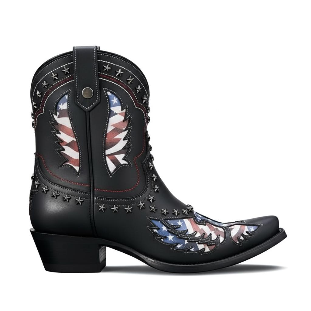 Introducing our exquisite handcrafted ankle boots that combine unique craftsmanship with modern style, ideal for every fashion-forward individual looking for comfort and flair. Crafted from premium full-grain leather, these boots feature exceptional attention to detail, ensuring they are as durable as they are chic. The rich texture and intricate design elements, including star-patterned studs and a flag print, make them a standout choice in your wardrobe.