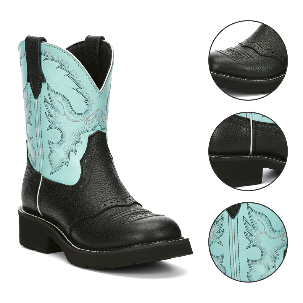 Introducing our Western Cowboy Ankle Boots for Women, where sophisticated style meets exceptional comfort. Crafted from soft and breathable genuine leather, these boots feature a vibrant floral embroidery design that captures the essence of Western elegance. Our unique craftsmanship ensures that every pair is hand-finished with meticulous attention to detail, making them not just footwear, but a statement piece.