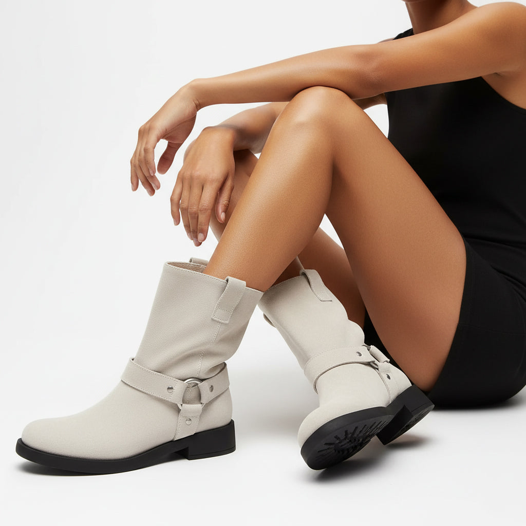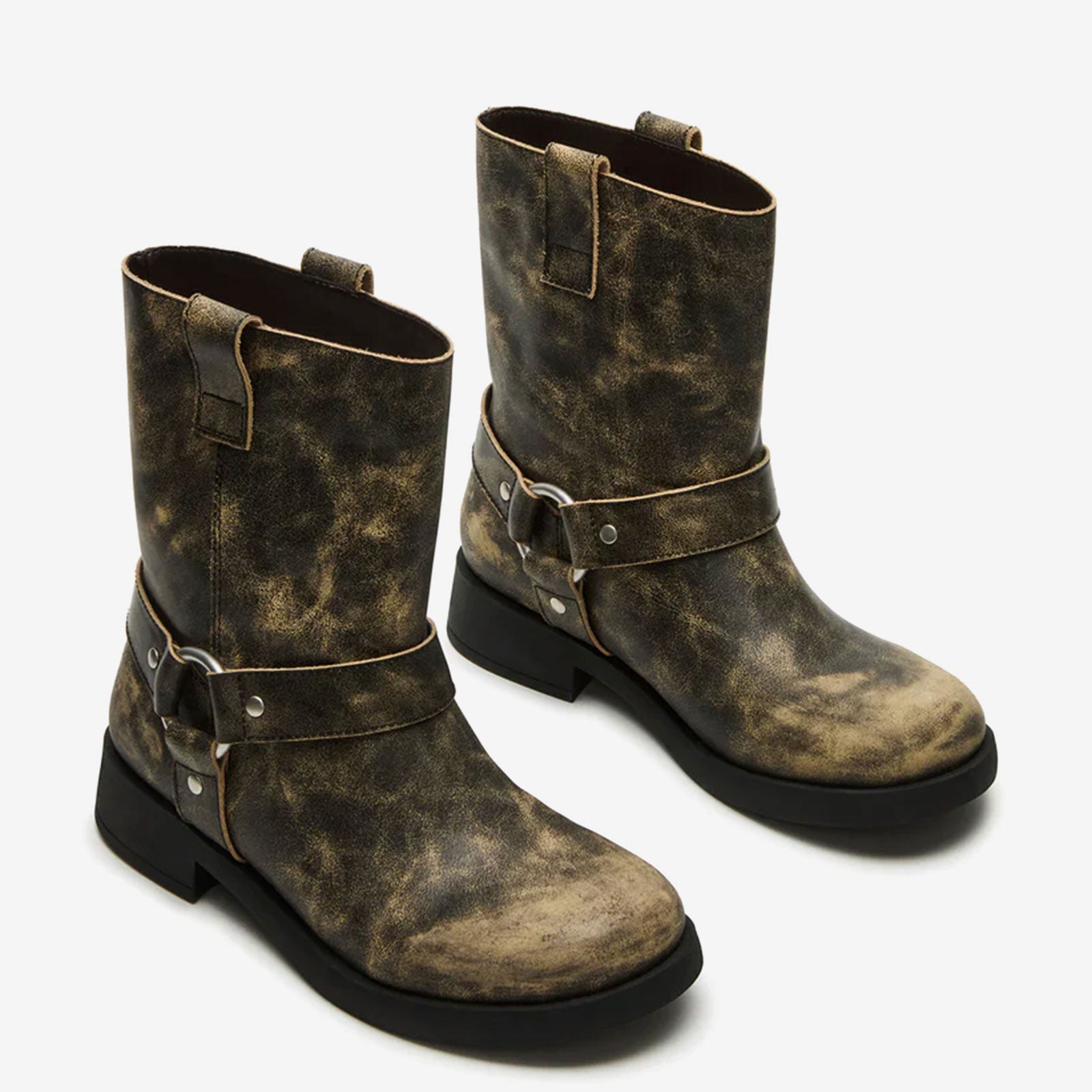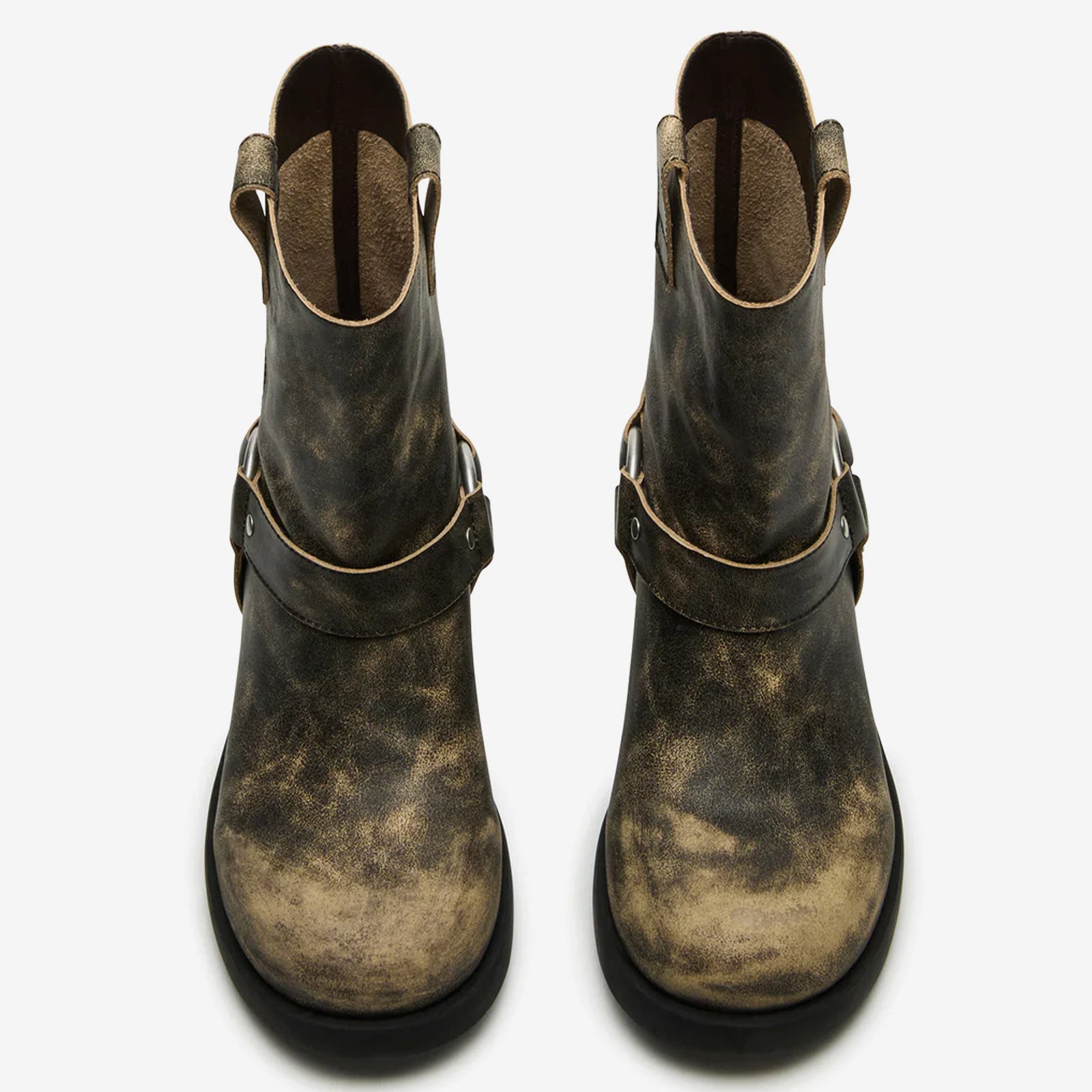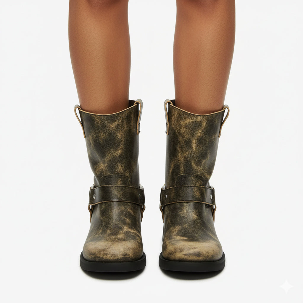 Elevate your footwear collection with our Western Cowboy Ankle Boots for Women. Meticulously crafted from premium leather, these boots showcase a unique vintage design that seamlessly blends style with functionality. The chic metal buckle detail enhances the overall aesthetic, making these ankle boots a statement piece for any wardrobe.