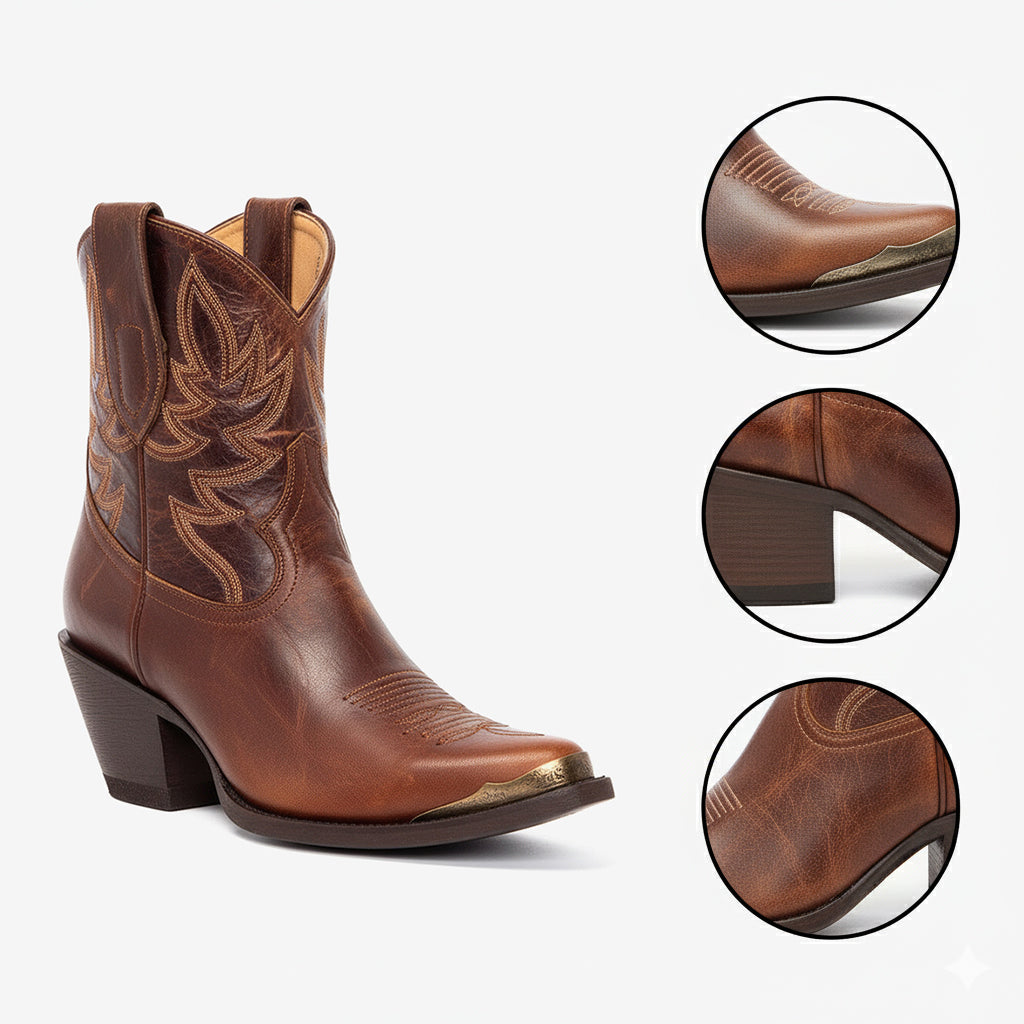 Step into a new level of fashion with our Western Cowboy Ankle Boots for Women. Designed with intricate vintage floral embroidery, these boots not only showcase a unique aesthetic but also embody the spirit of the wild west. Crafted from high-quality PU materials, they boast a luxurious feel while ensuring durability.