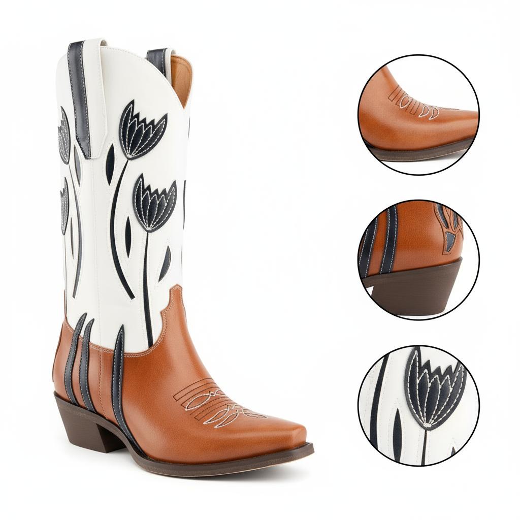 Step into unmistakable style with our exquisite Western Cowboy Boots for Women. Crafted from high-quality PU material, these boots boast intricate floral embroidery that adds a unique charm to your outfit. Designed to elevate your wardrobe, they seamlessly blend modern fashion with traditional craftsmanship.