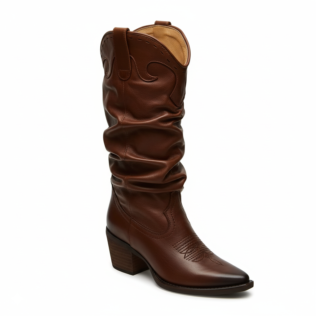 Embrace the spirit of the West with our Western Cowboy Boots for Women, designed for both style and comfort. Crafted with a chic wrinkled texture, these boots offer a unique blend of elegance and rugged charm, making them a must-have for any fashion-forward wardrobe.