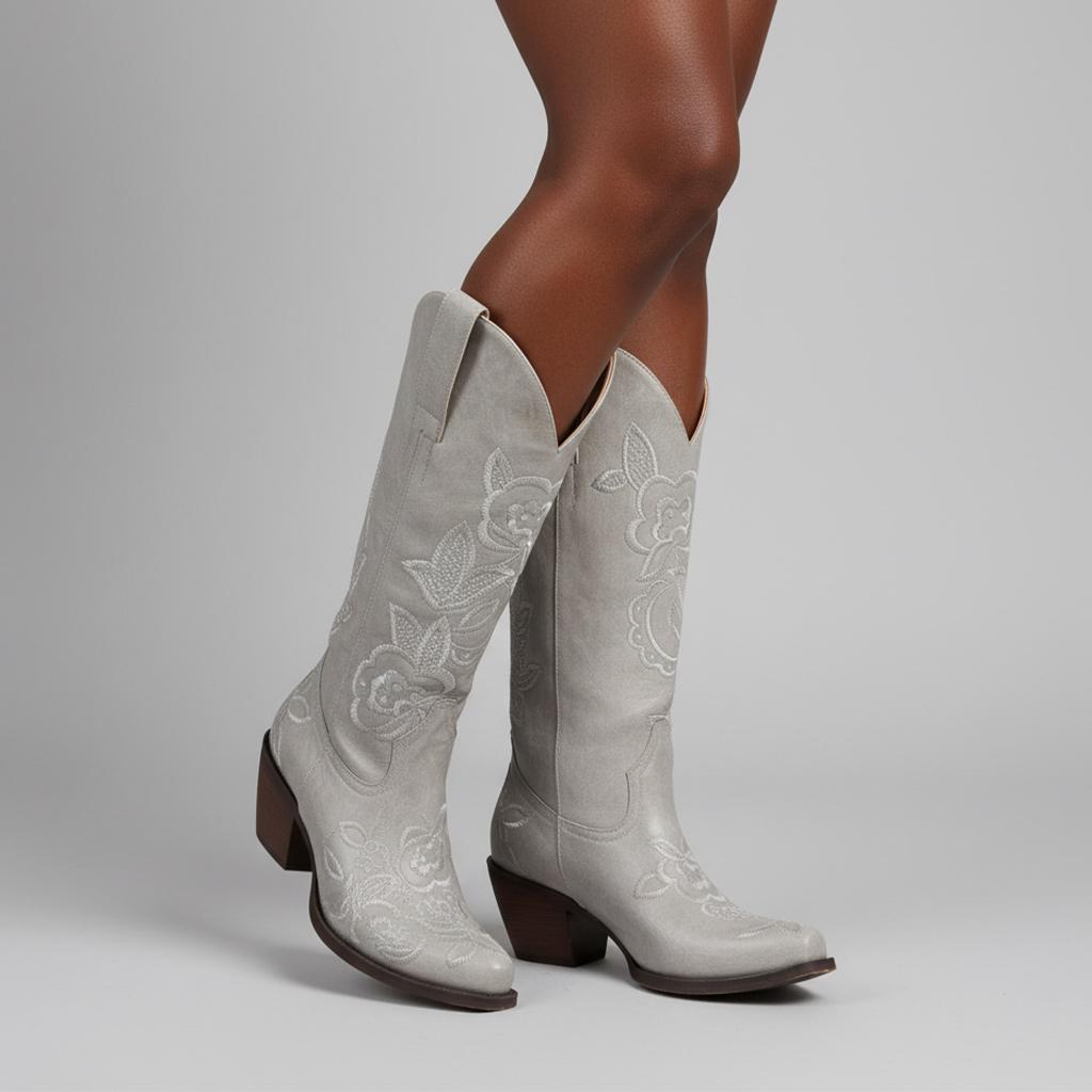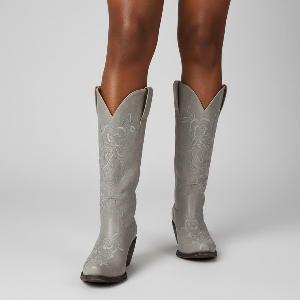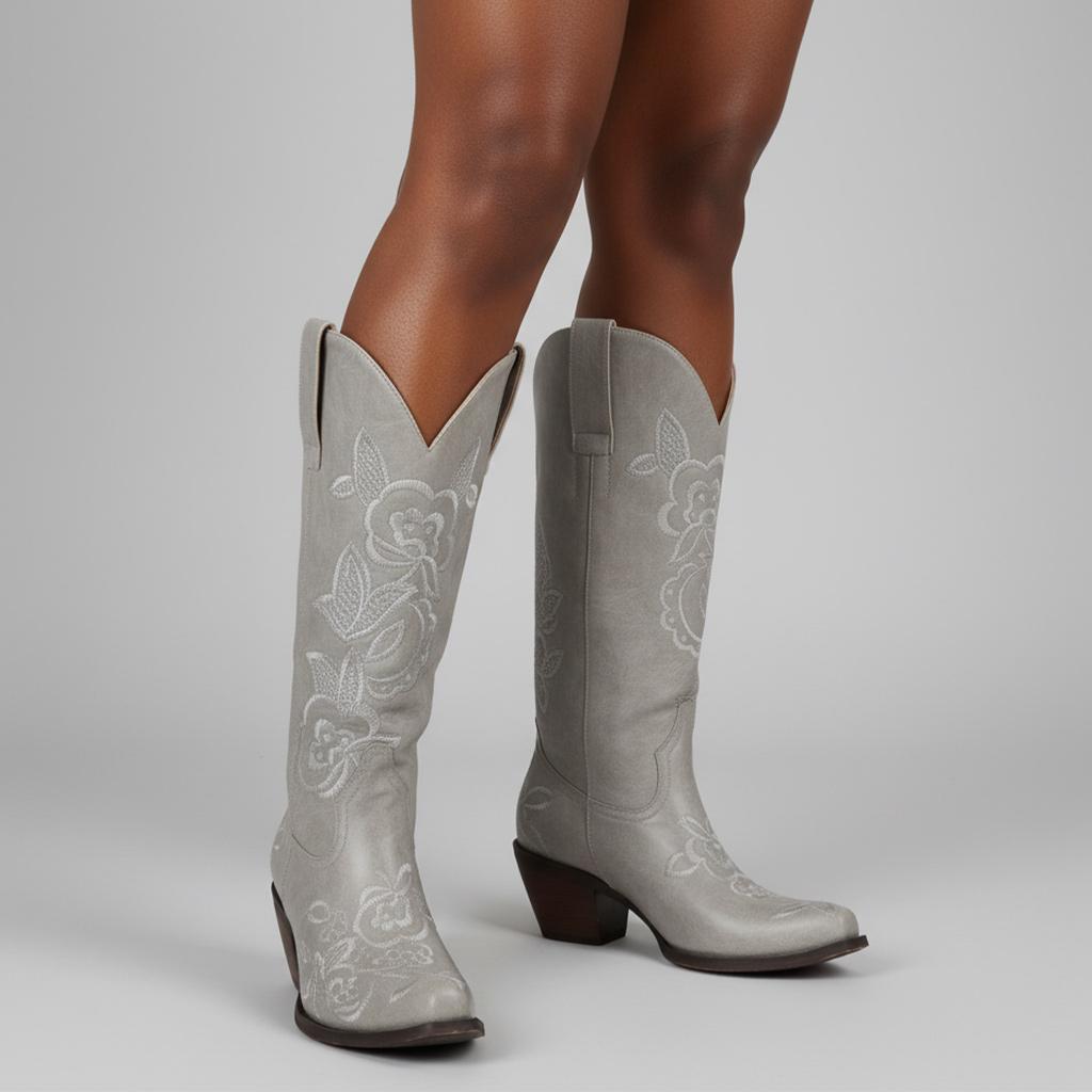 Step into elegance with our Western Cowboy Women's Mid-Calf Boots crafted from premium genuine leather. The exquisite floral embroidery showcases unique craftsmanship, making each pair a statement piece that enhances any outfit.