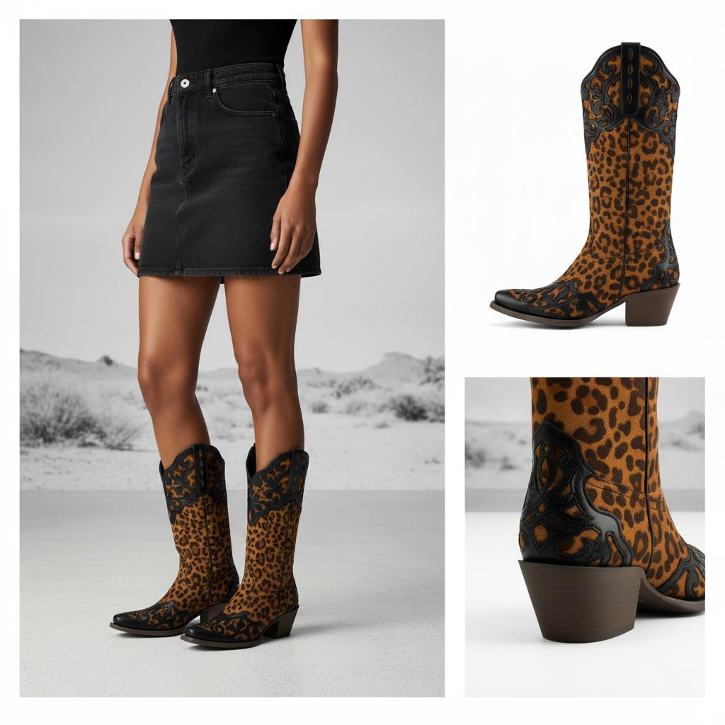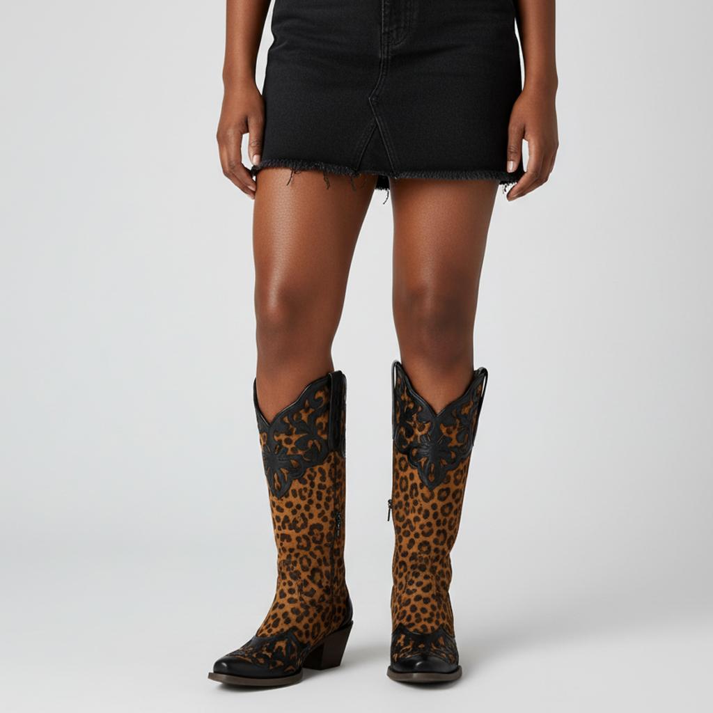 Discover the perfect blend of style and comfort with our Western Cowboy Women's Boots. Crafted from high-quality faux suede, these boots feature a unique animal print that sets you apart. The meticulous handcrafted construction ensures durability while adding a touch of elegance. Suitable for all-day wear, these boots are designed to make a statement.