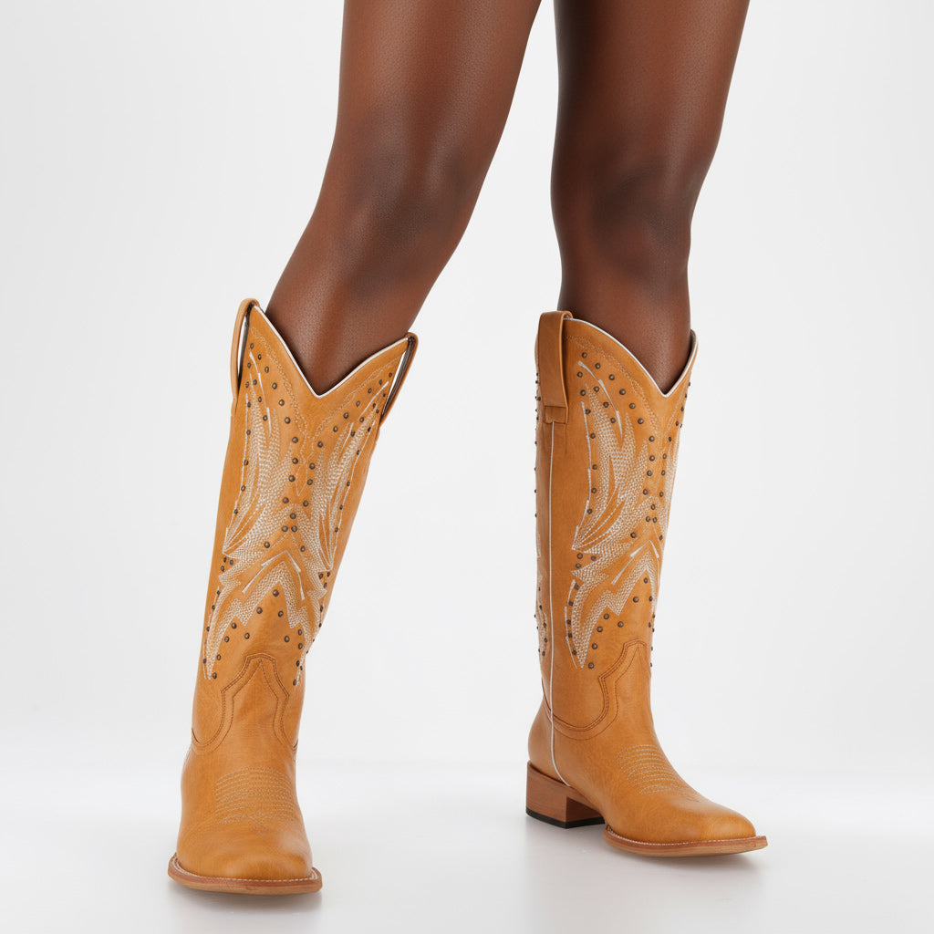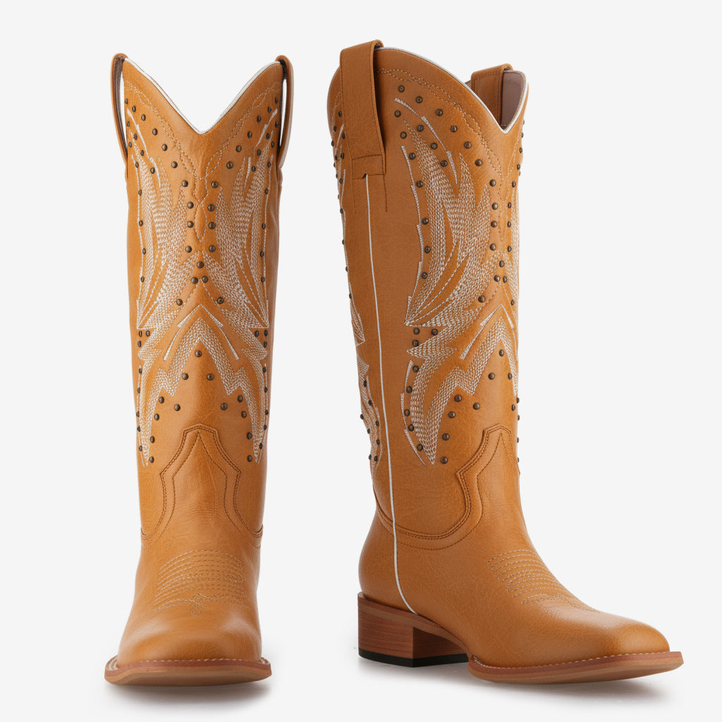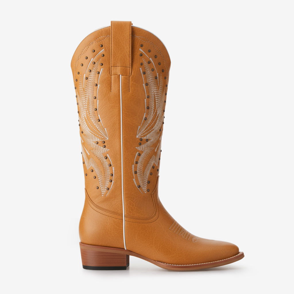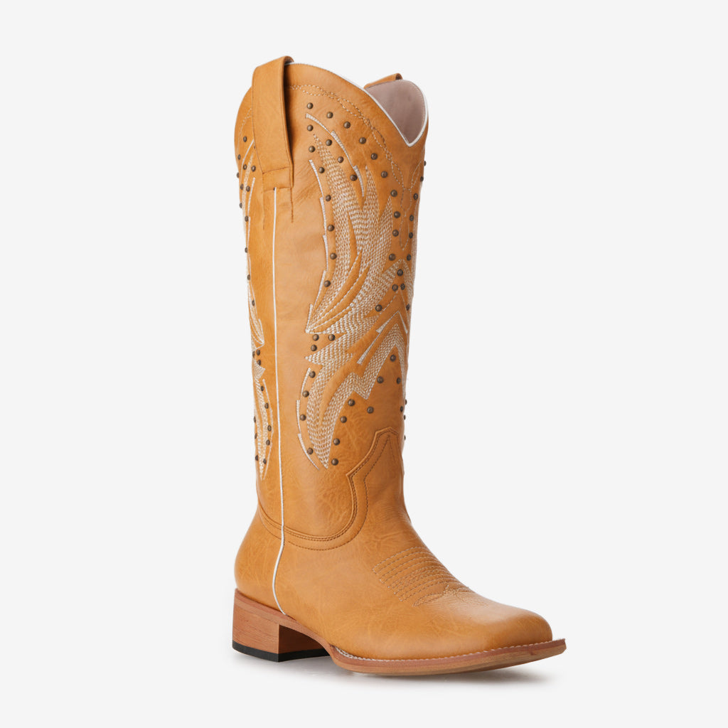 Pair these stylish boots with your favorite jeans and a flowy top for a laid-back look, or dress them up with a chic dress for evening events. The striking embroidery and decorative studs will ensure you’re the center of attention, no matter the occasion!