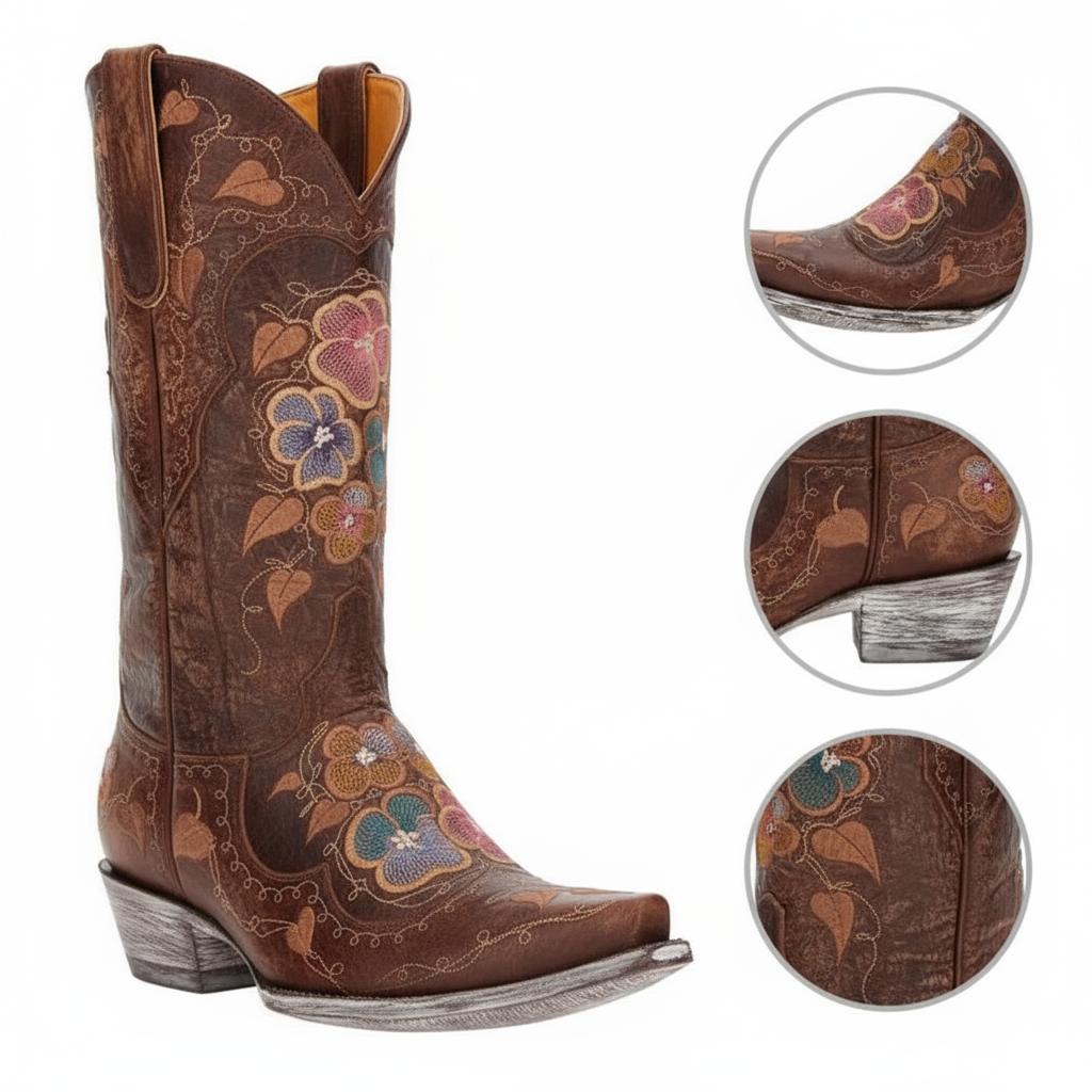 Experience the perfect blend of comfort and style with our Western Cowgirl Boots for Women. Crafted from premium full-grain leather, these boots showcase unique floral embroidery that adds an exquisite touch to your outfit.