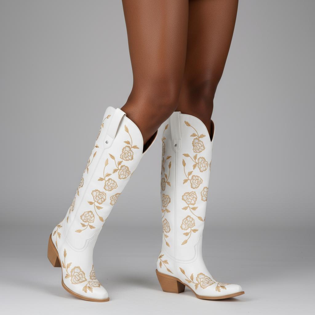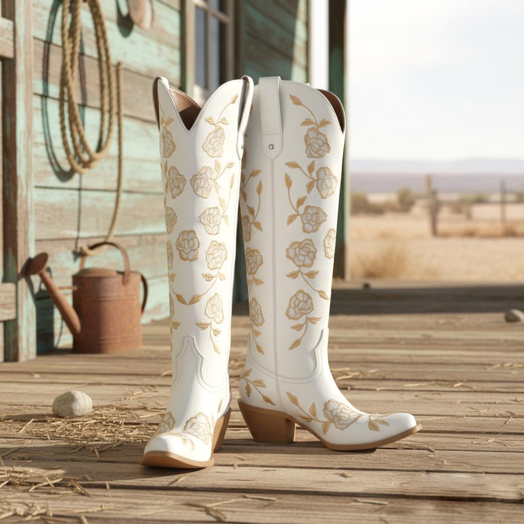 Elevate your wardrobe with our luxurious genuine leather Western boots. Each pair features a stunning chic floral embroidery design, crafted with attention to detail that embodies unique craftsmanship. Engineered for comfort, these knee-high boots are designed to provide support and style with every step.