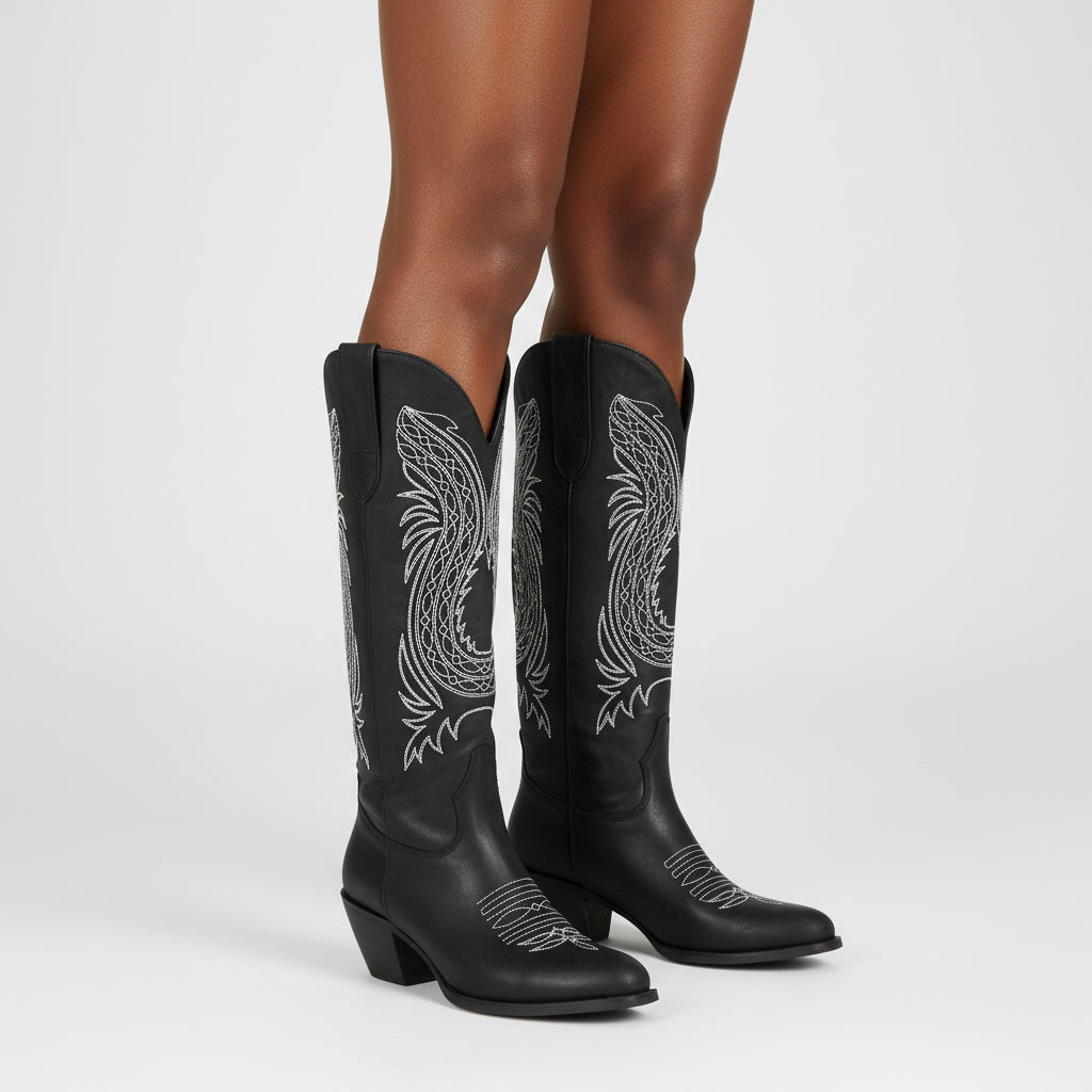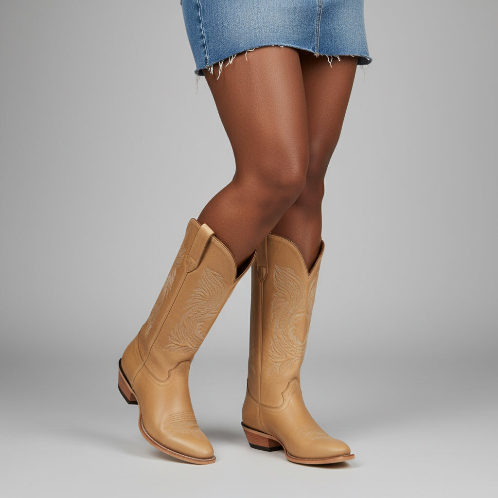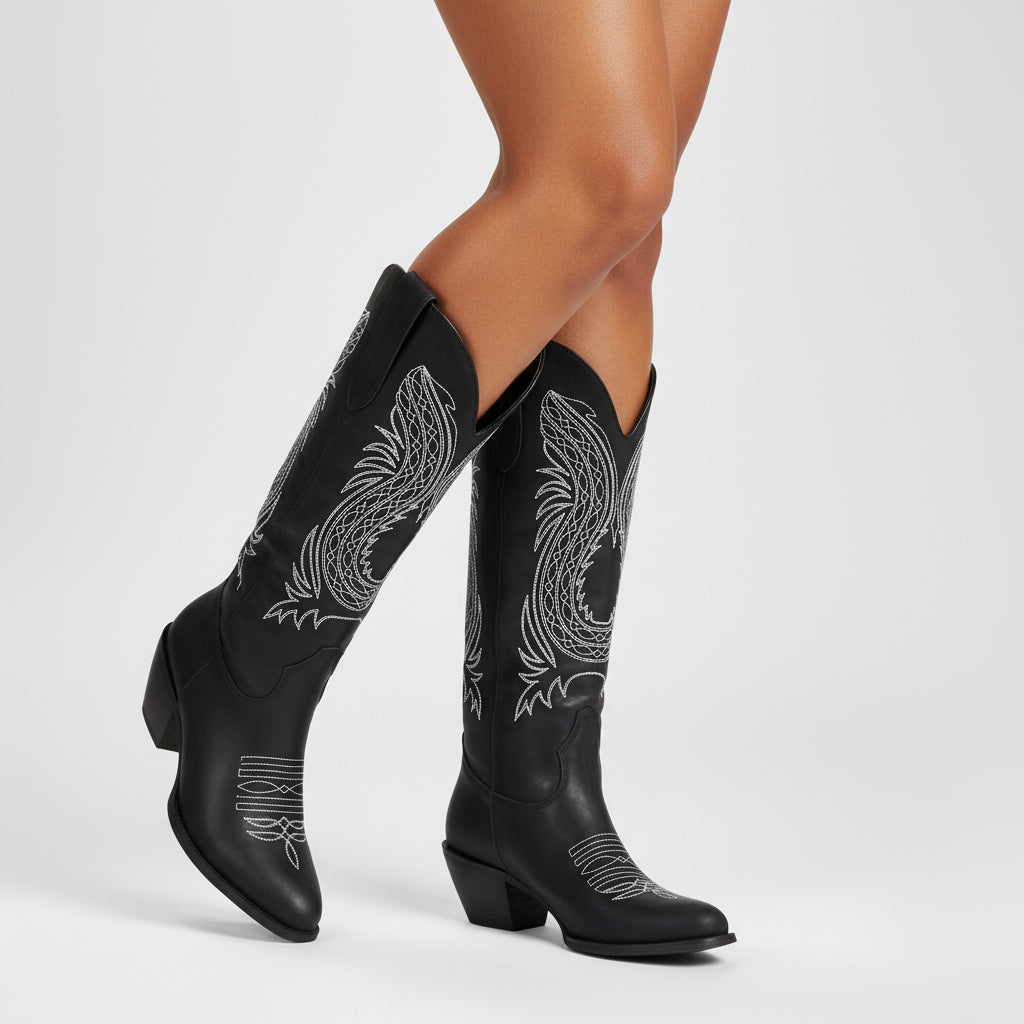 Discover unparalleled craftsmanship and vintage charm with our Western Embroidered Mid Calf Boots. Made from premium full-grain leather, these boots showcase a unique embroidered design that adds a touch of retro flair to any outfit. Each pair is expertly crafted and hand-finished for a quality that resonates with discerning fashion enthusiasts.