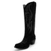 Step into sophistication with our Western Embroidered Pointed Toe Chunky Heel Boots. Crafted from premium faux suede, these boots showcase a unique embroidered design, ensuring that you stand out at any occasion. The sleek, pointed toe and knee-high length provide a chic silhouette that perfectly embodies retro charm.