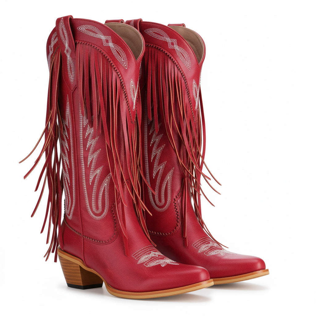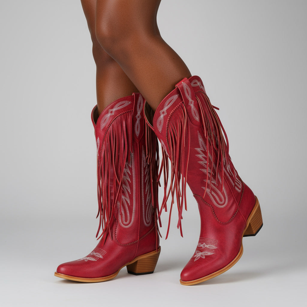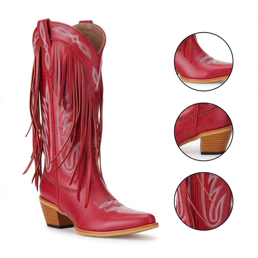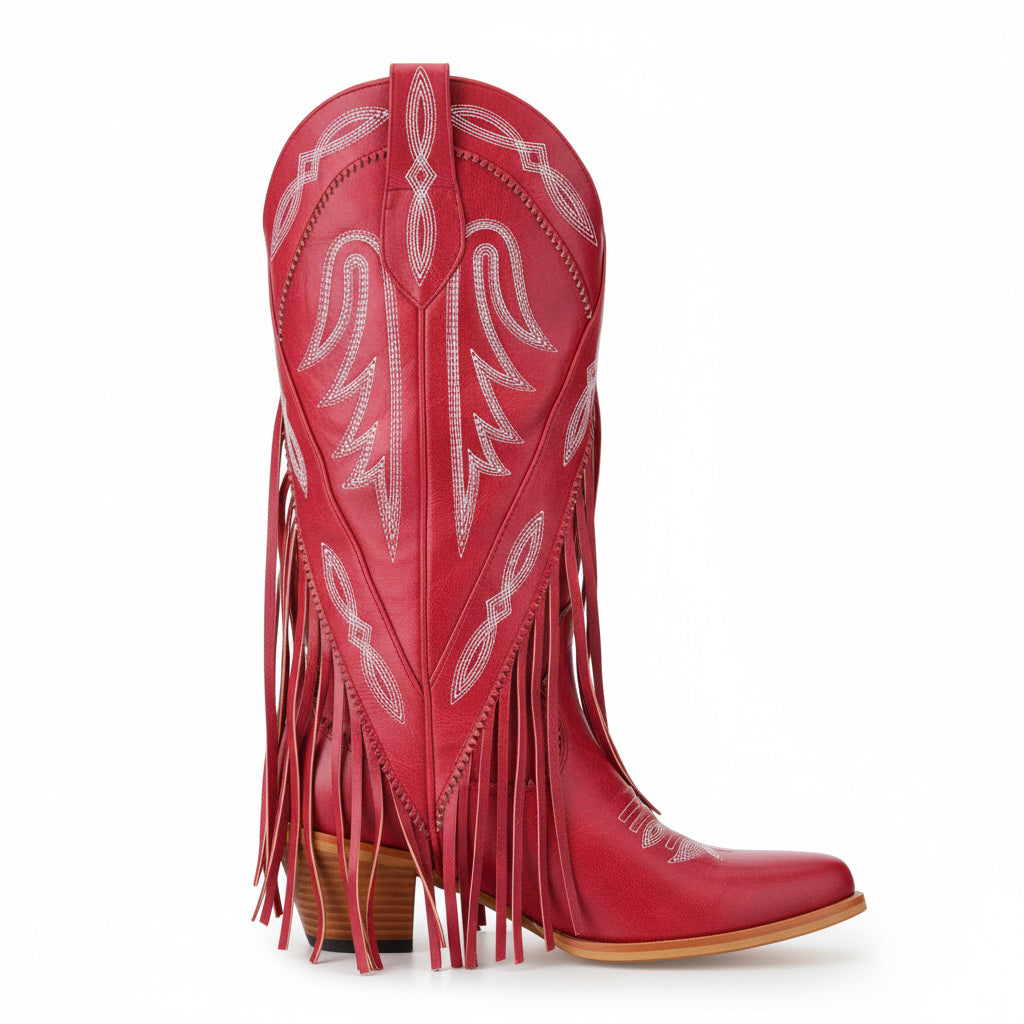 Discover the perfect blend of style and comfort with our Western Floral Cowboy Boots for Women. These handcrafted boots feature a mid-calf design that ensures all-day wear, making them ideal for parties, travel, and performances. Crafted from premium full-grain leather, these boots embody unique craftsmanship with exquisite floral embroidery and stylish fringe detail for a chic look.