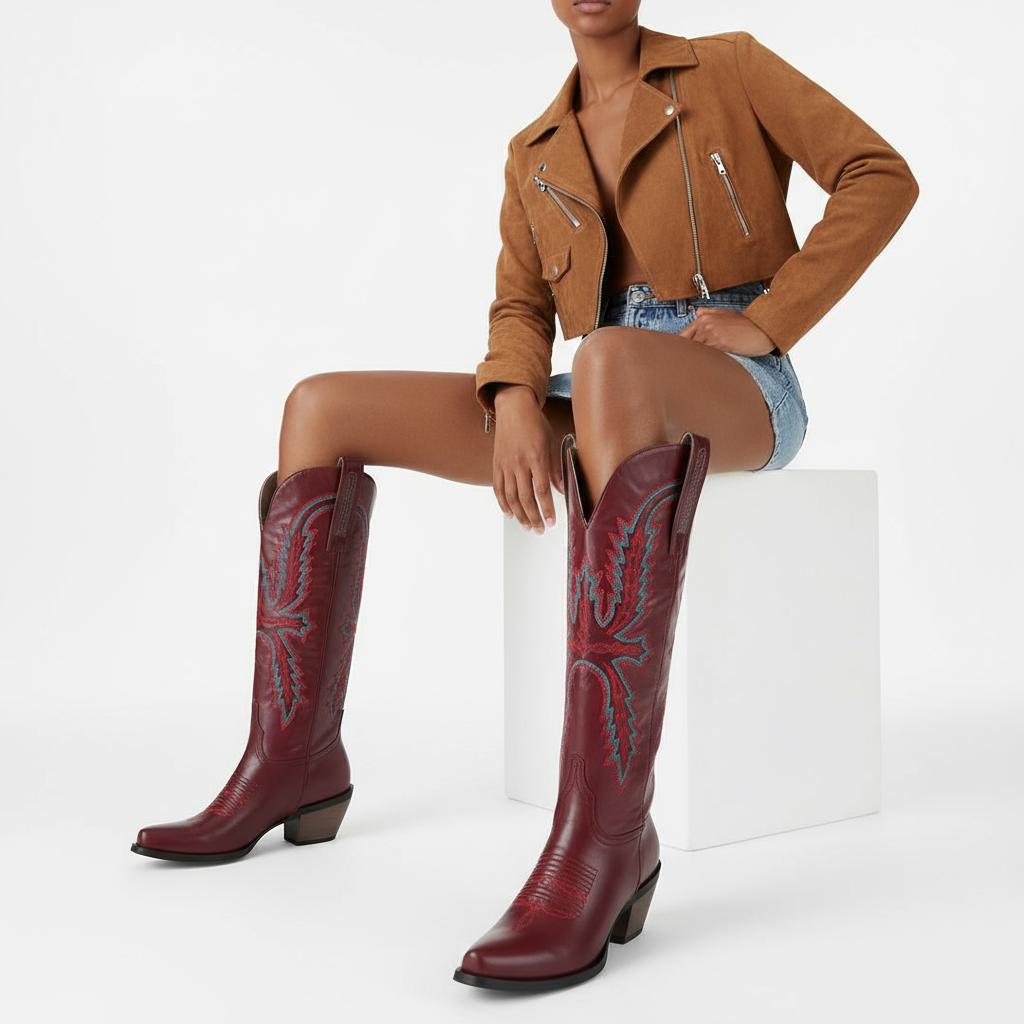 Introducing our Western Cowboy Boots for Women, expertly crafted from premium full-grain leather for a luxurious feel. These boots showcase meticulous floral embroidery, adding a unique touch to your footwear collection. Designed to enhance your outfit, they embody both elegance and rugged charm, perfect for any occasion.