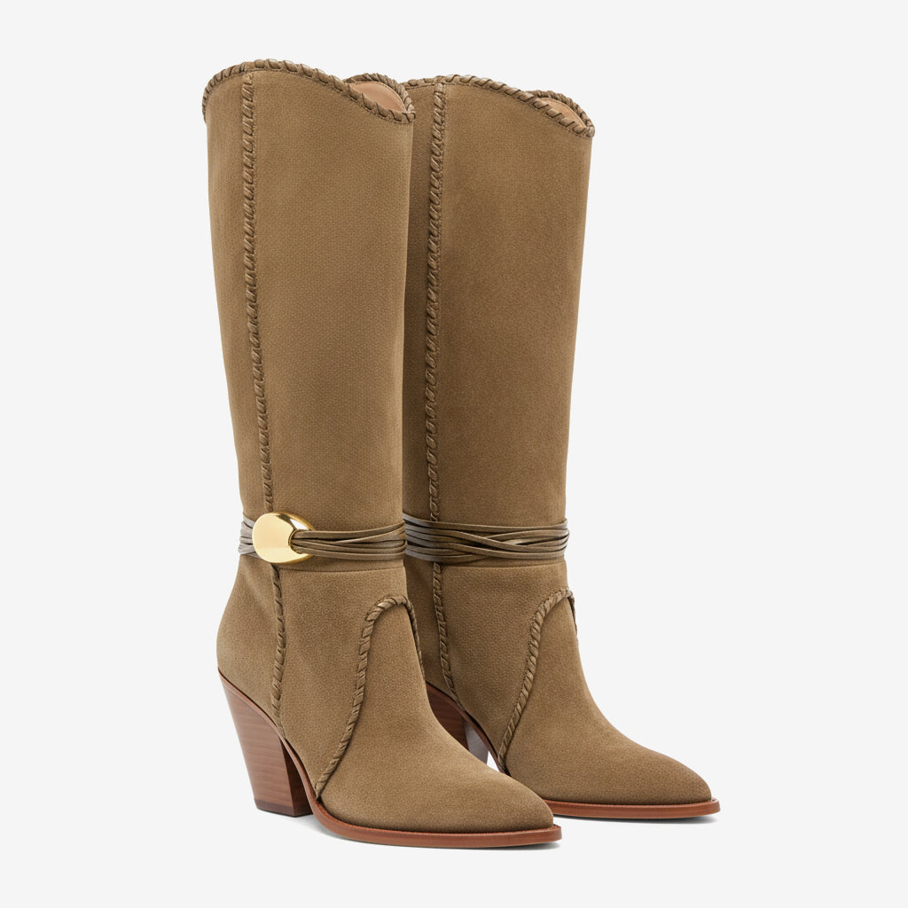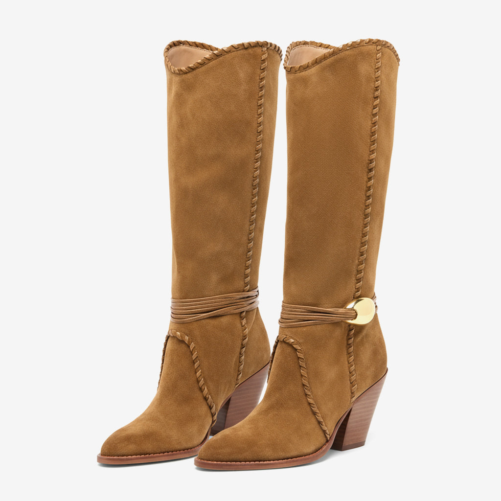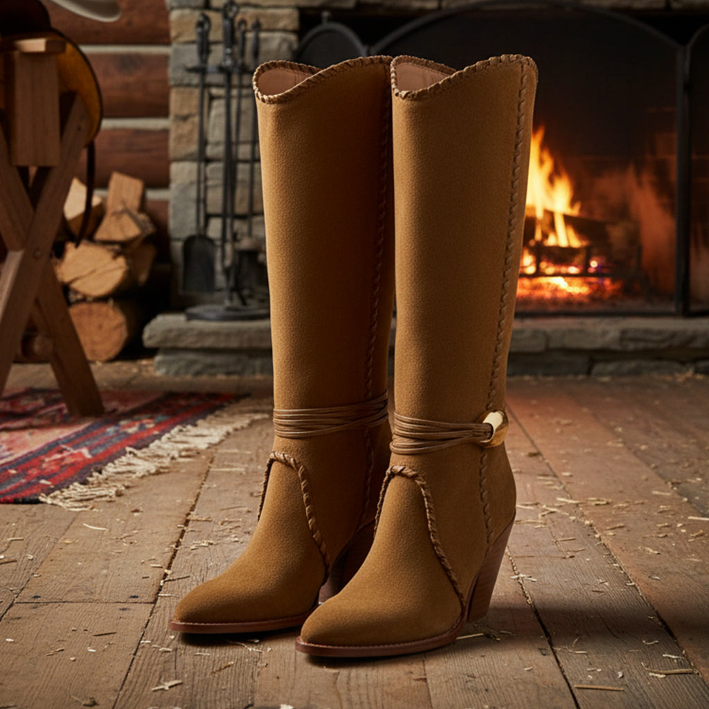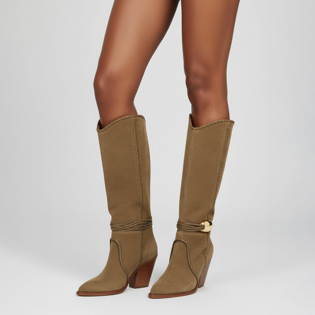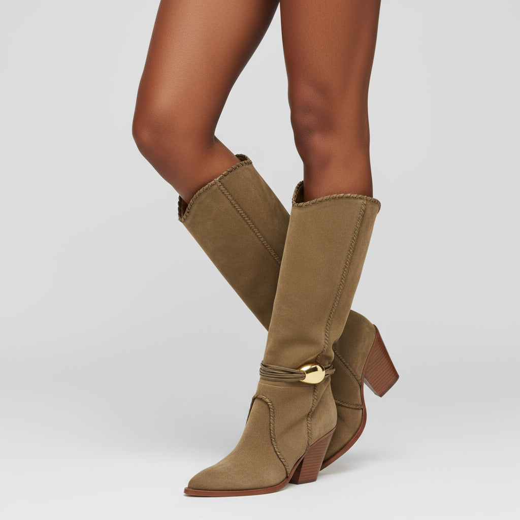 Elevate your style with our Western Knee-High Boots, meticulously crafted from soft faux suede to provide both comfort and sophistication. The unique woven design not only adds an exquisite touch but also showcases the expert craftsmanship that goes into each pair. Made for the modern woman, these boots blend fashion and functionality, making them your perfect companion for any occasion.