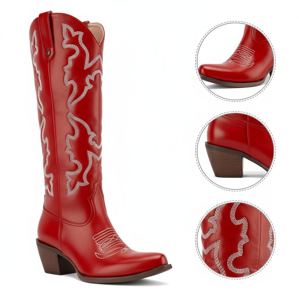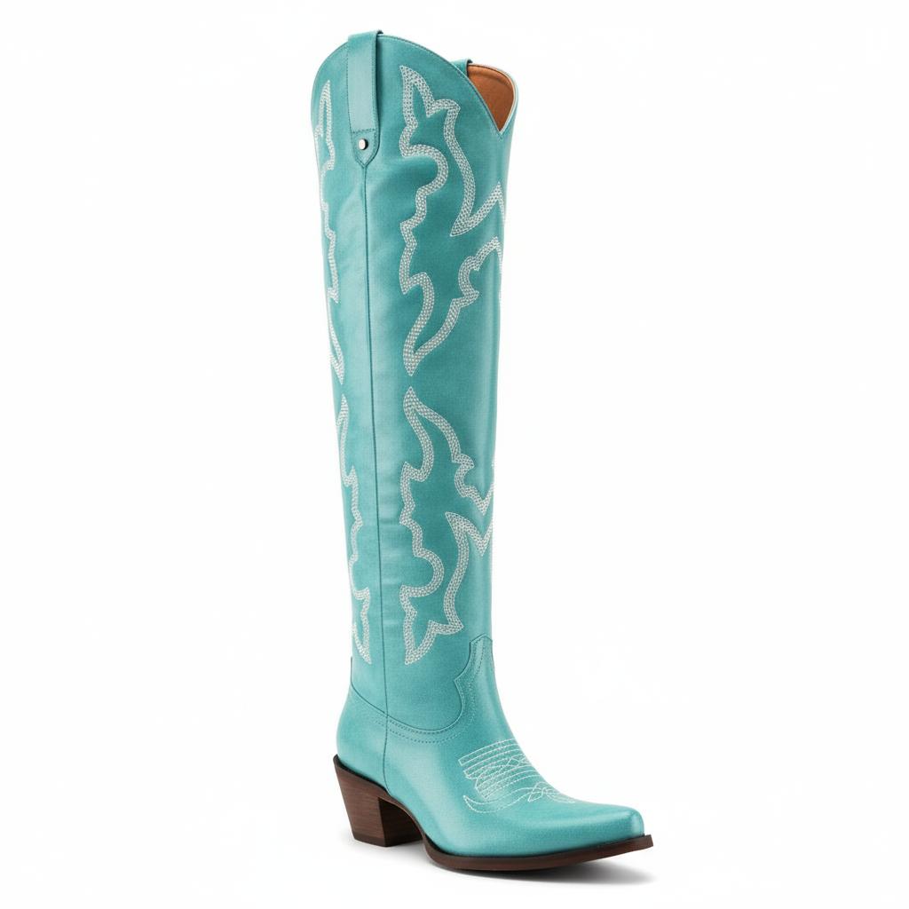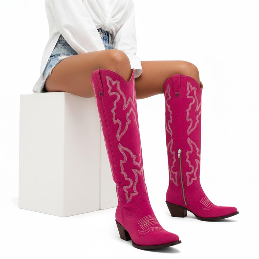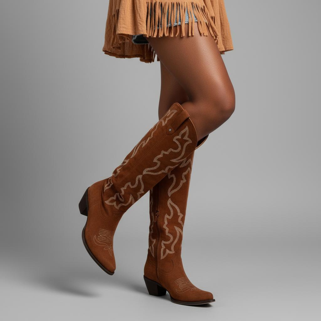 Elevate your style with our handcrafted knee-high western boots, designed for the modern woman who values comfort, durability, and unique craftsmanship.