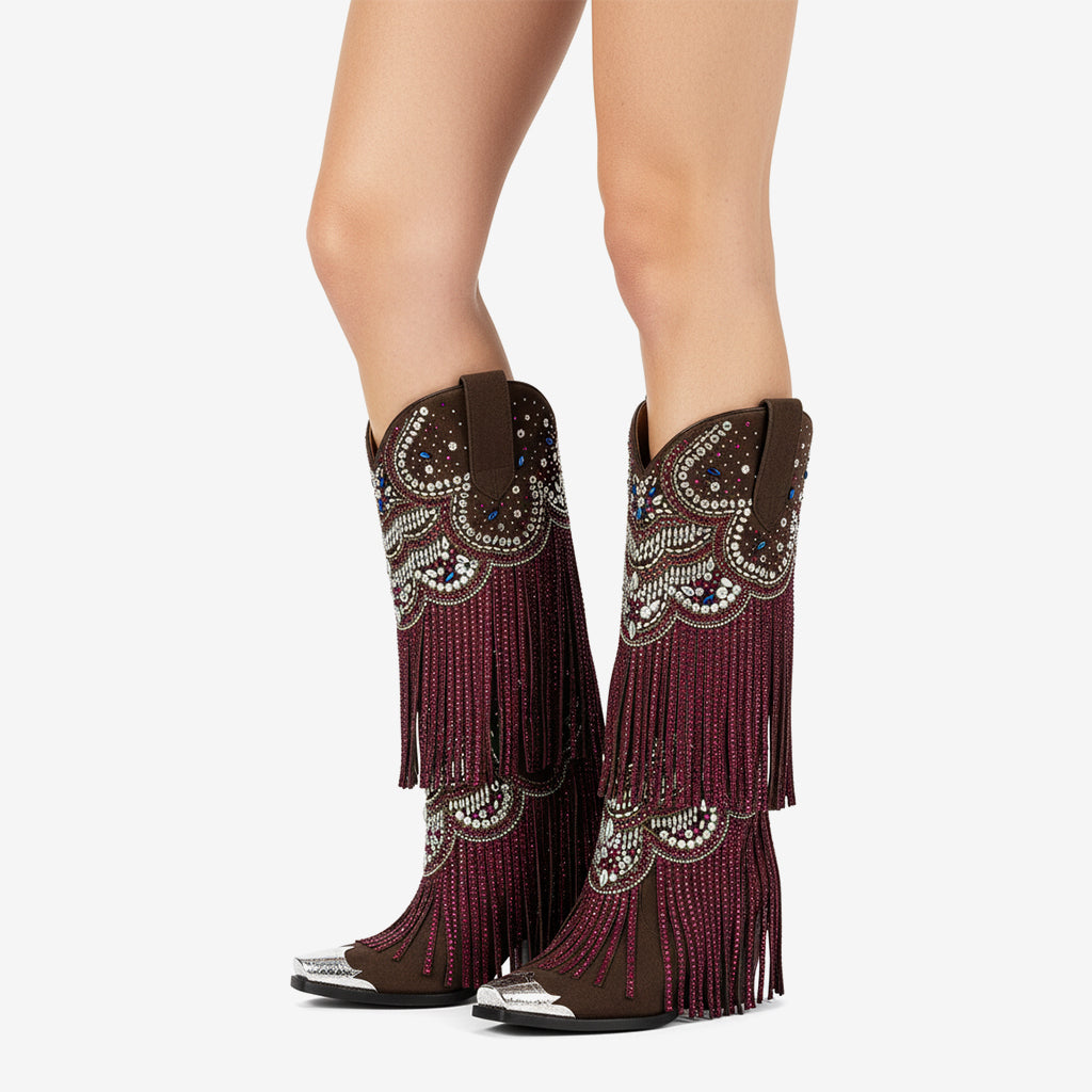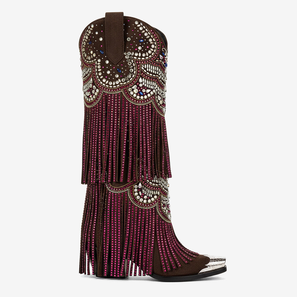 Elevate your style with our handcrafted knee-high boots, perfect for any occasion, from elegant parties to dazzling performances. Each pair is designed with unique attention to detail, ensuring a one-of-a-kind aesthetic that captures attention. If you're looking for versatility and style, our knee-high boots are the ultimate choice. Pair them with your favorite dress for a night out, or wear them with jeans for a casual yet chic look.