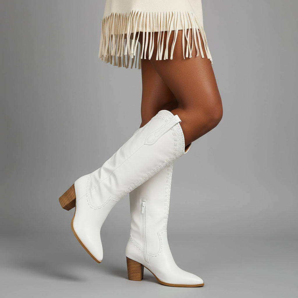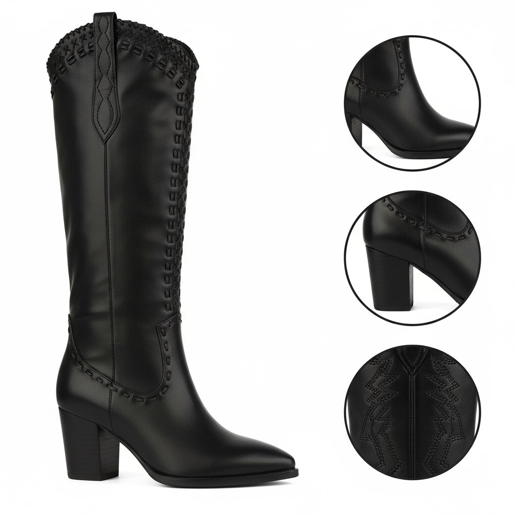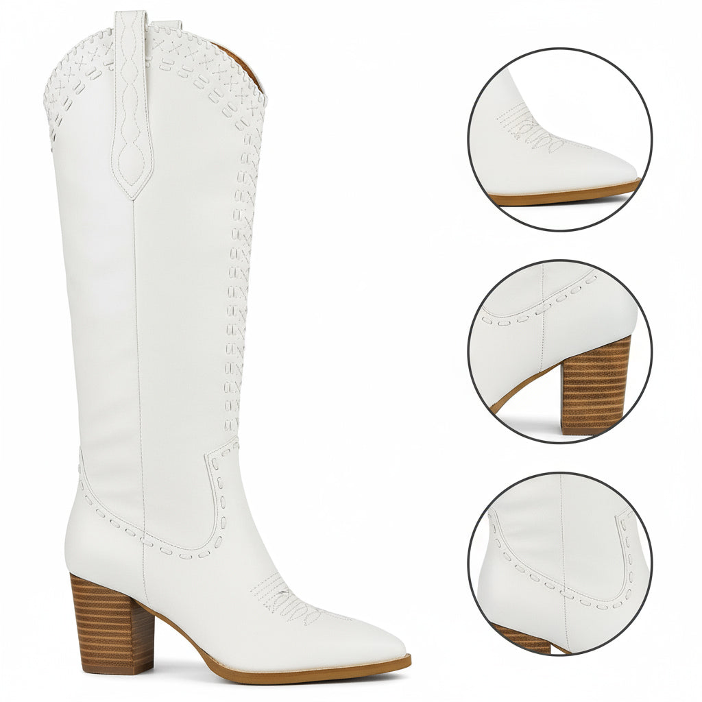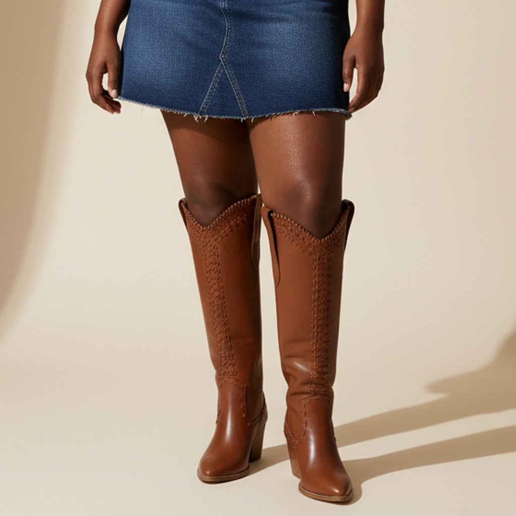 Discover the perfect blend of style and comfort with our Western Knee-High Boots for Women. Crafted from premium woven genuine leather, these boots showcase exceptional handcrafted quality and unique craftsmanship, ensuring durability and a luxurious feel.