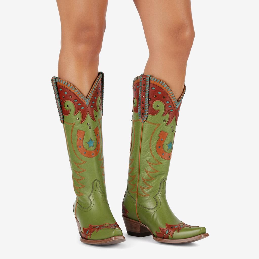 Experience timeless elegance and unmatched comfort with our Western Knee-High Boots for Women. Crafted from premium full-grain leather, these boots showcase unique floral embroidery and stud accents that elevate your style.