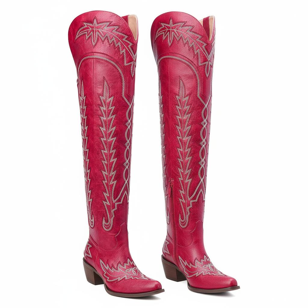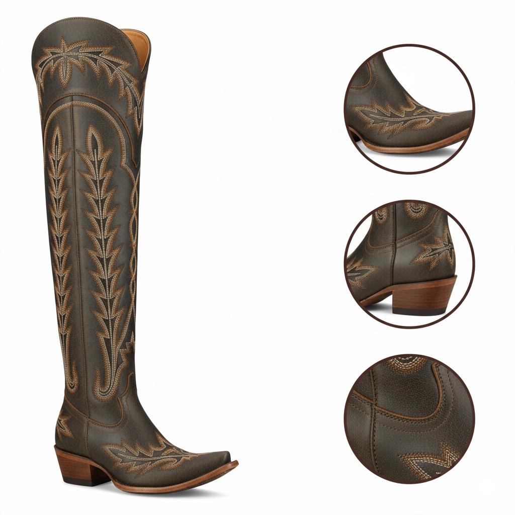 Elevate Your Style with Unique Craftsmanship - Our Western Knee High Boots for Women showcase an exquisite blend of premium craftsmanship and modern design. Handcrafted from full-grain leather and adorned with floral embroidery, these boots are a testament to unique craftsmanship and attention to detail, guaranteeing that you stand out in any crowd.
