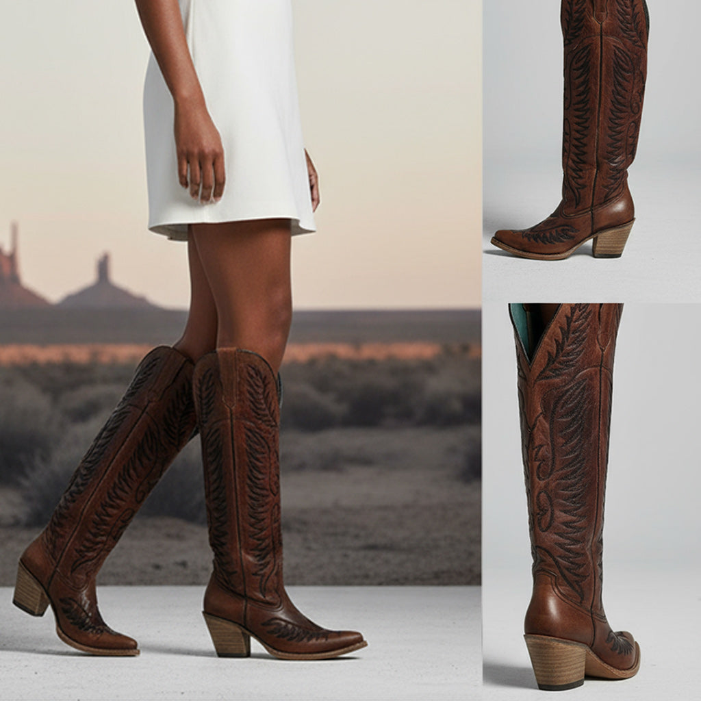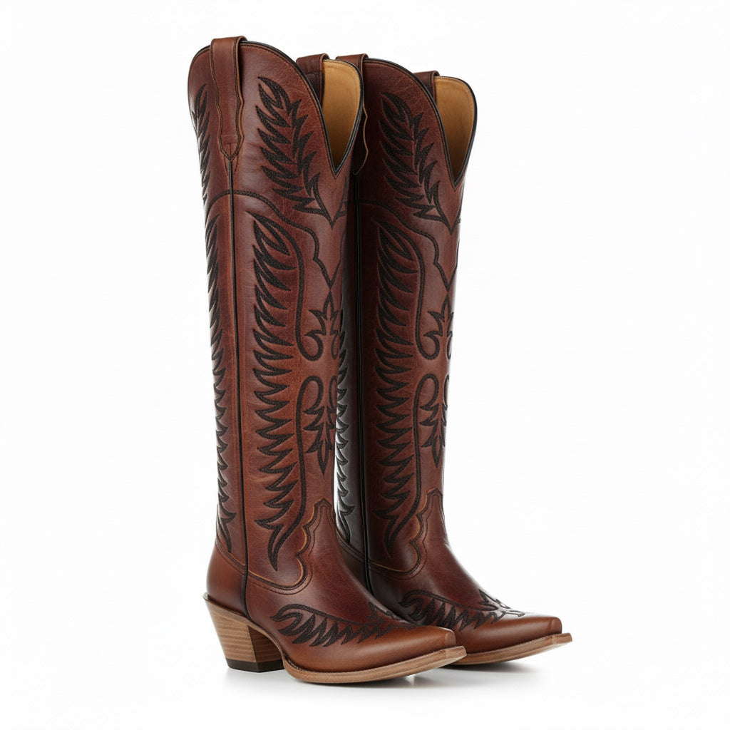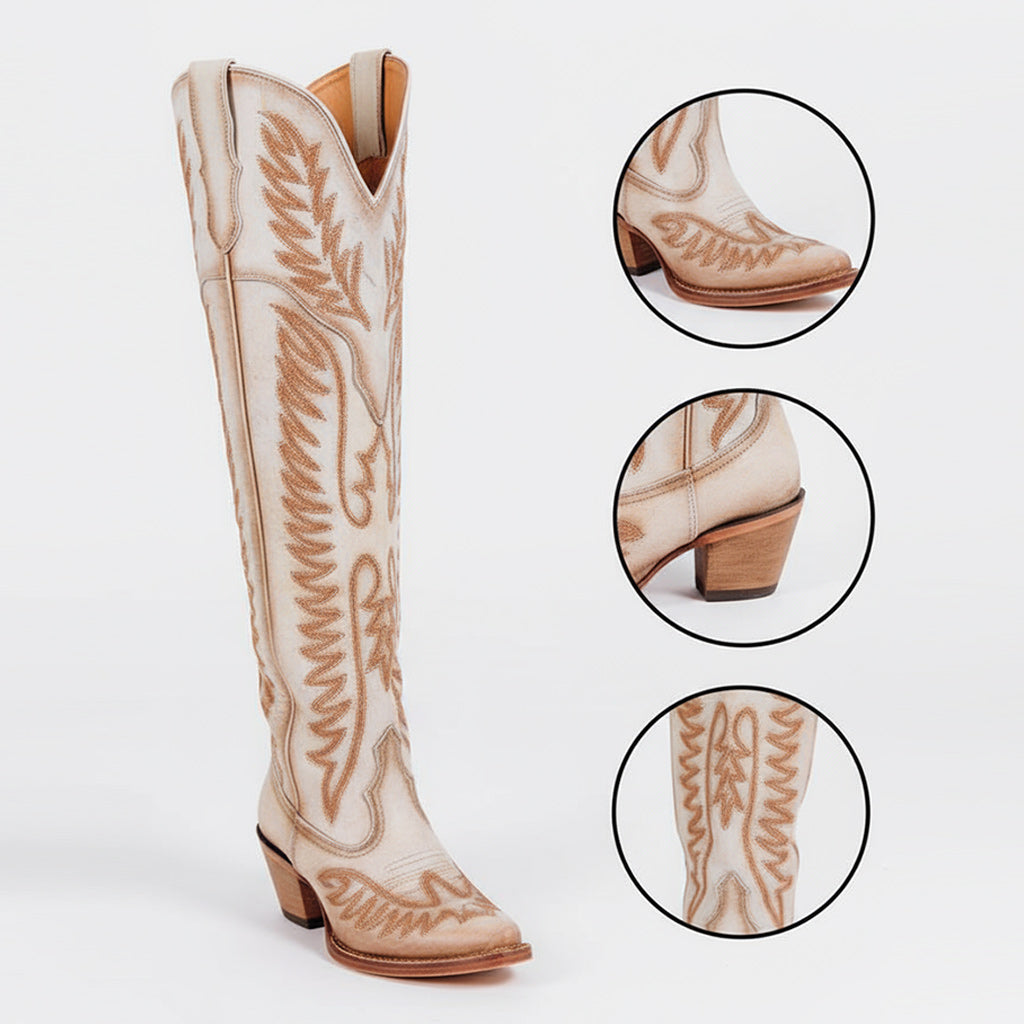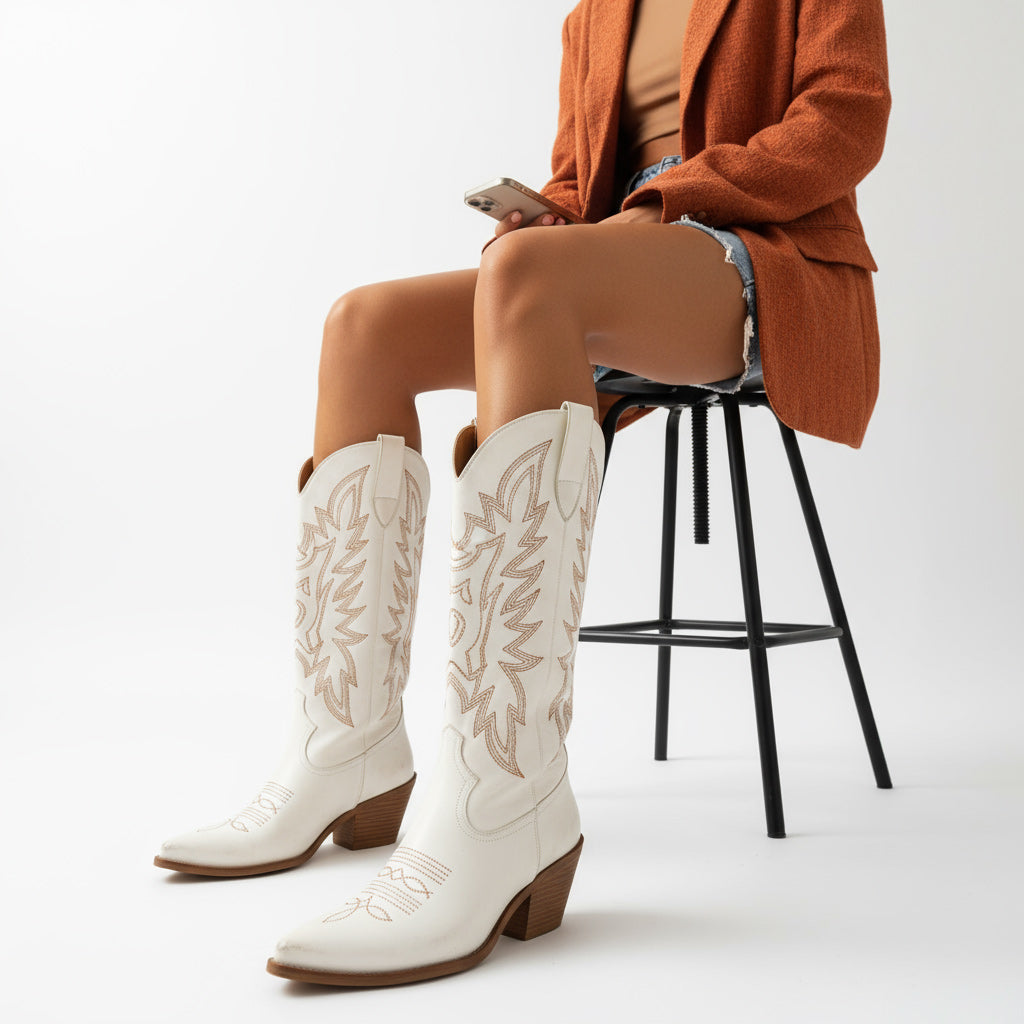 Experience Unmatched Comfort: Our meticulously handcrafted Western Cowgirl Boots boast a unique ergonomic design that provides exceptional cushioning and support. The padded insole and arch support ensure that your feet remain comfortable, even during long wear. Crafted with attention to detail, these boots are built to last, featuring reinforced stitching for unmatched durability.