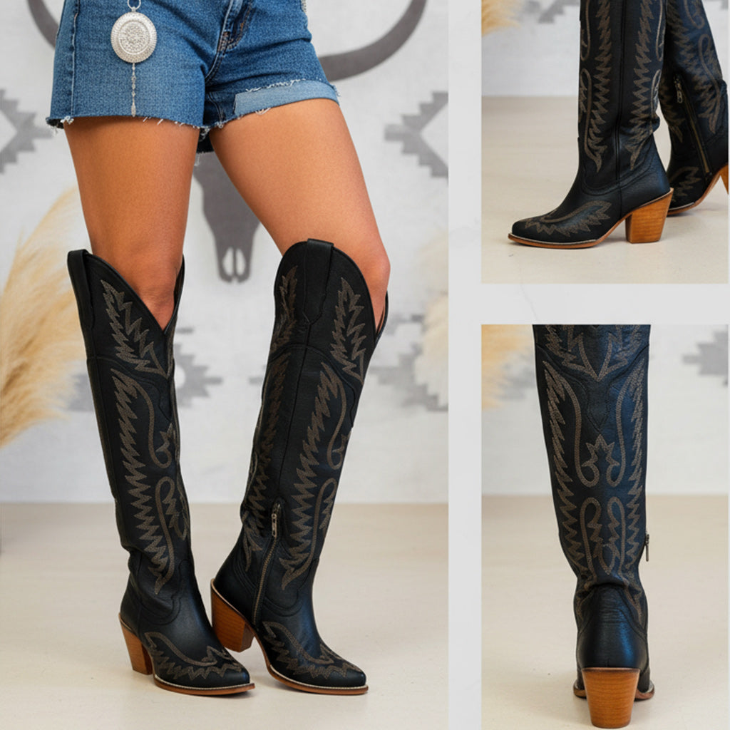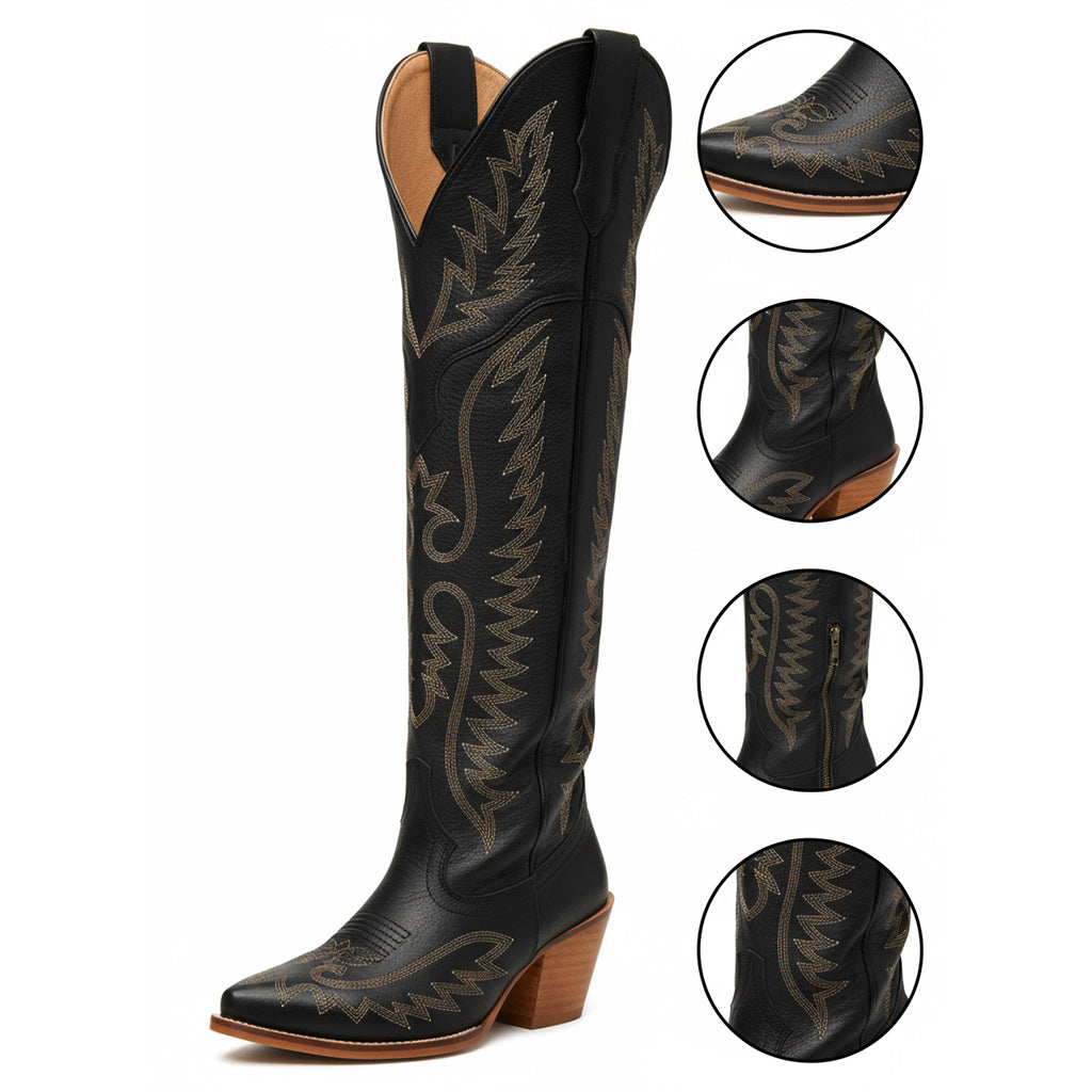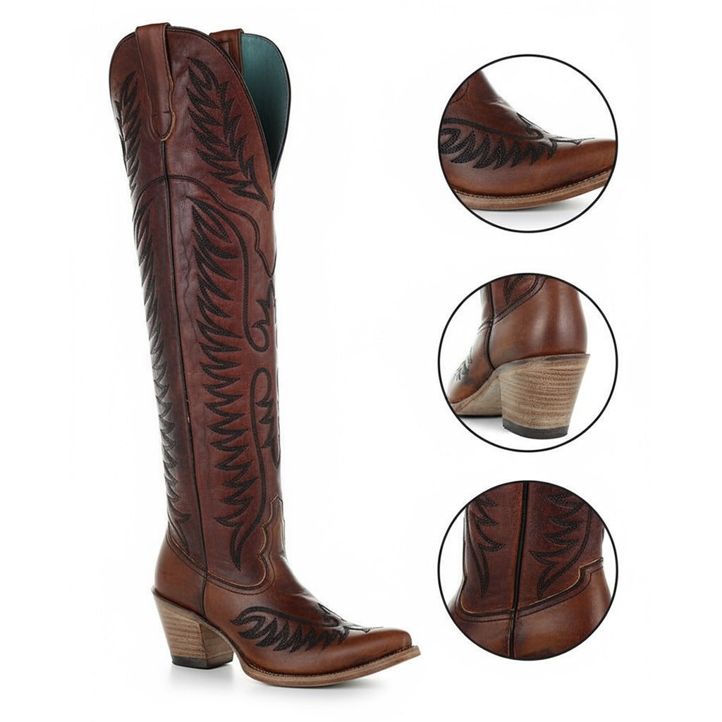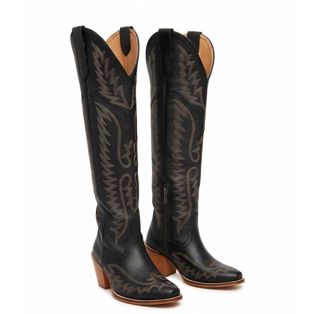 Experience Unmatched Comfort: Our meticulously handcrafted Western Cowgirl Boots boast a unique ergonomic design that provides exceptional cushioning and support. The padded insole and arch support ensure that your feet remain comfortable, even during long wear. Crafted with attention to detail, these boots are built to last, featuring reinforced stitching for unmatched durability.