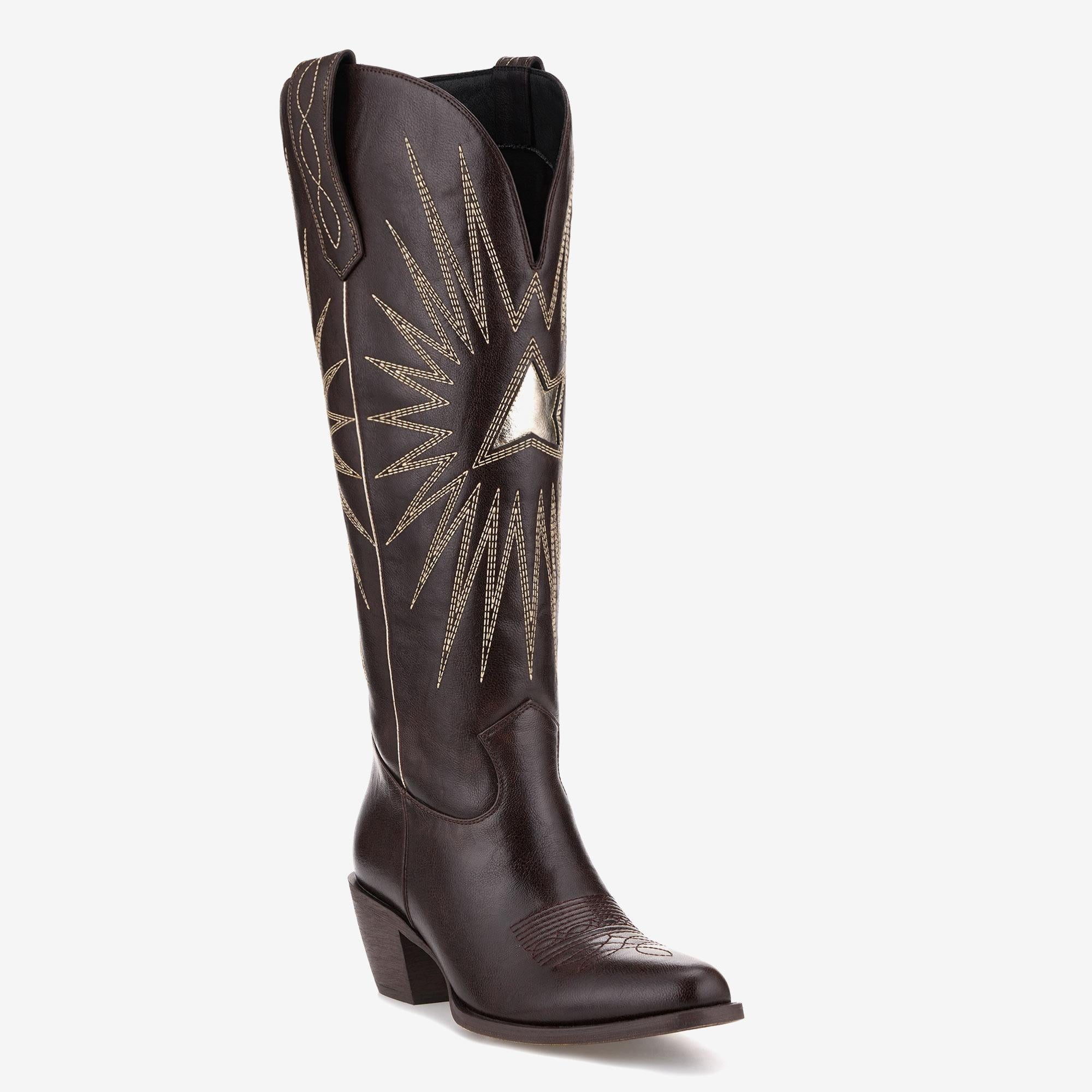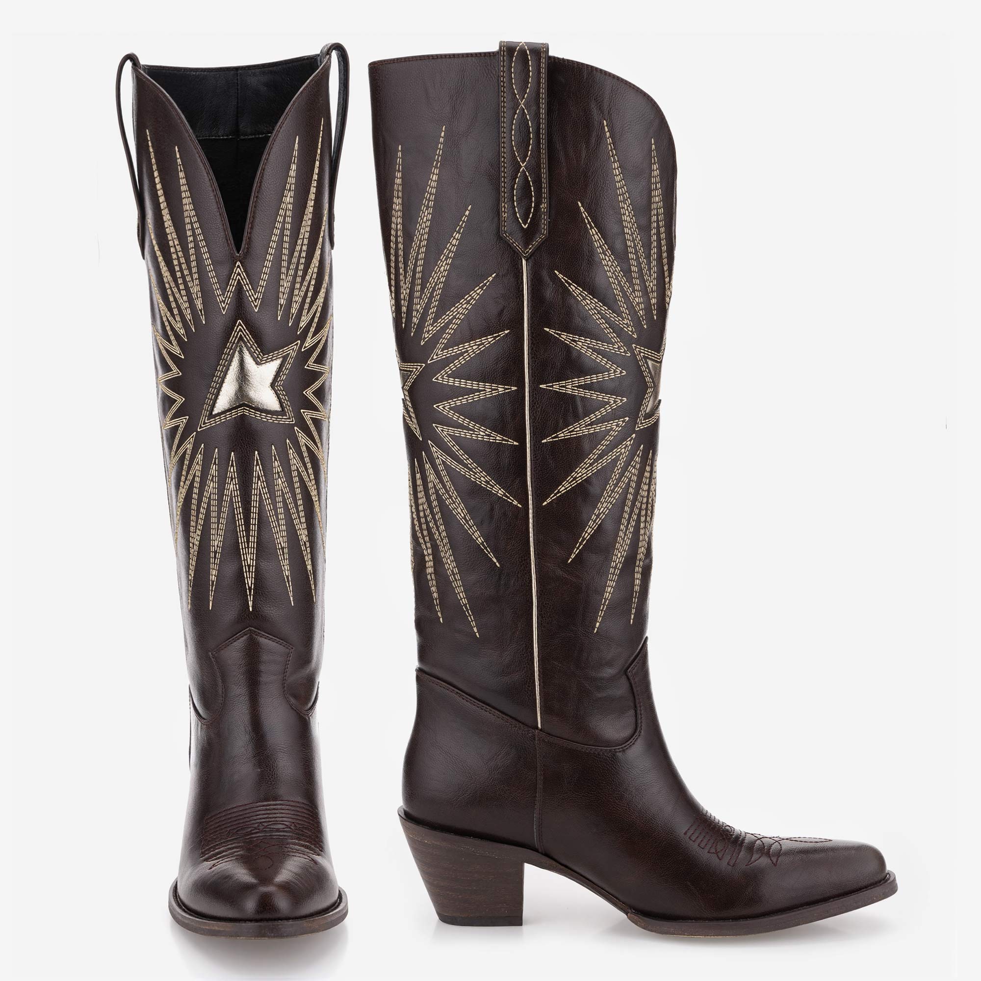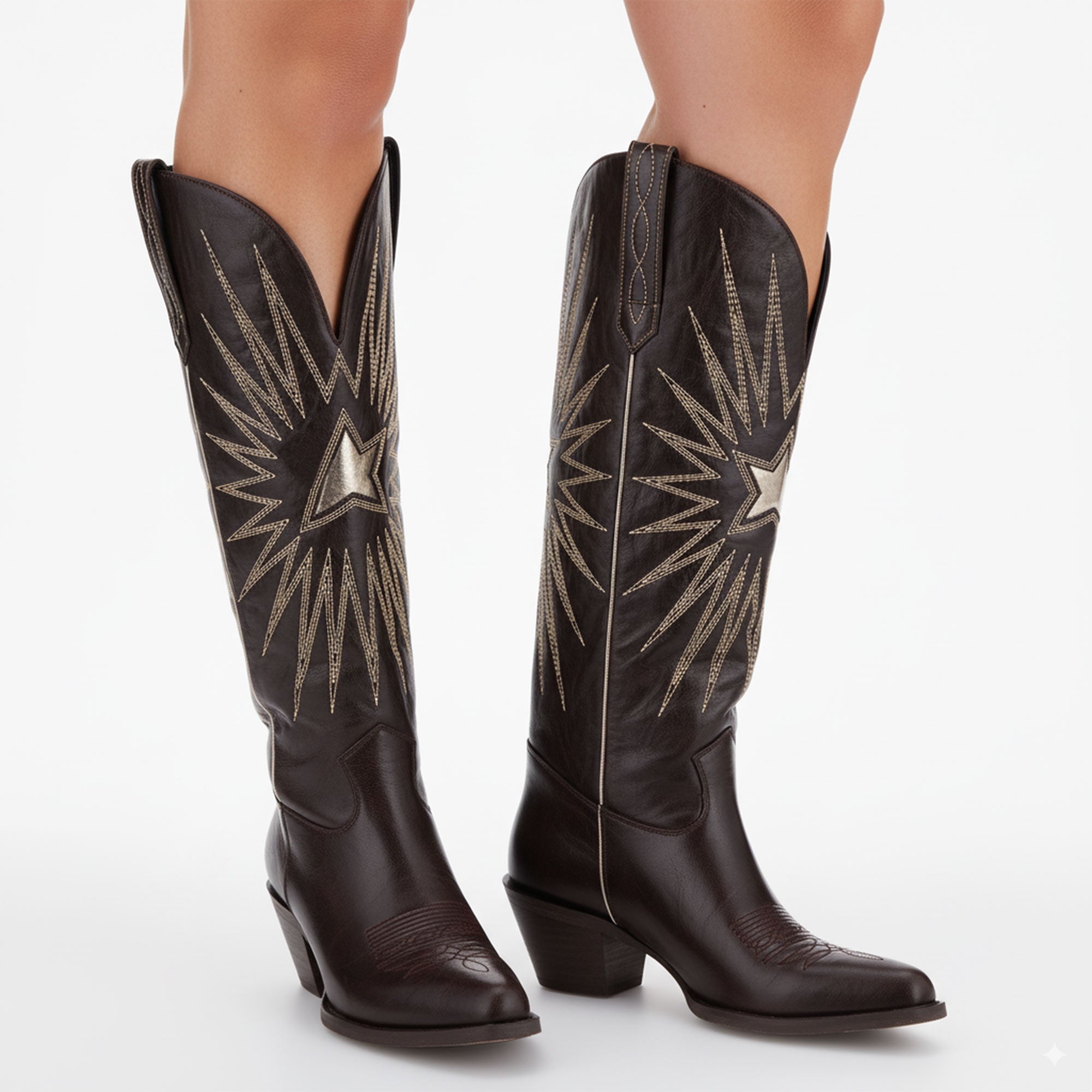 Experience Unique Craftsmanship: Elevate your wardrobe with our Western Knee High Boots, uniquely crafted from durable full grain leather. The meticulous hand-stitched details ensure a distinctive look that stands out, while the hand-finished shine adds a touch of elegance. Designed with an eye for detail, these boots are built to last.