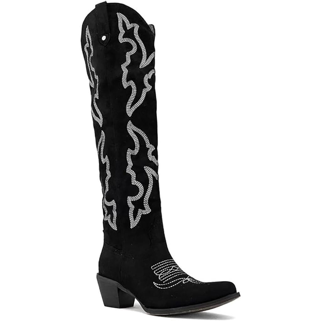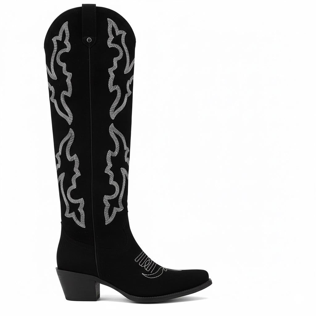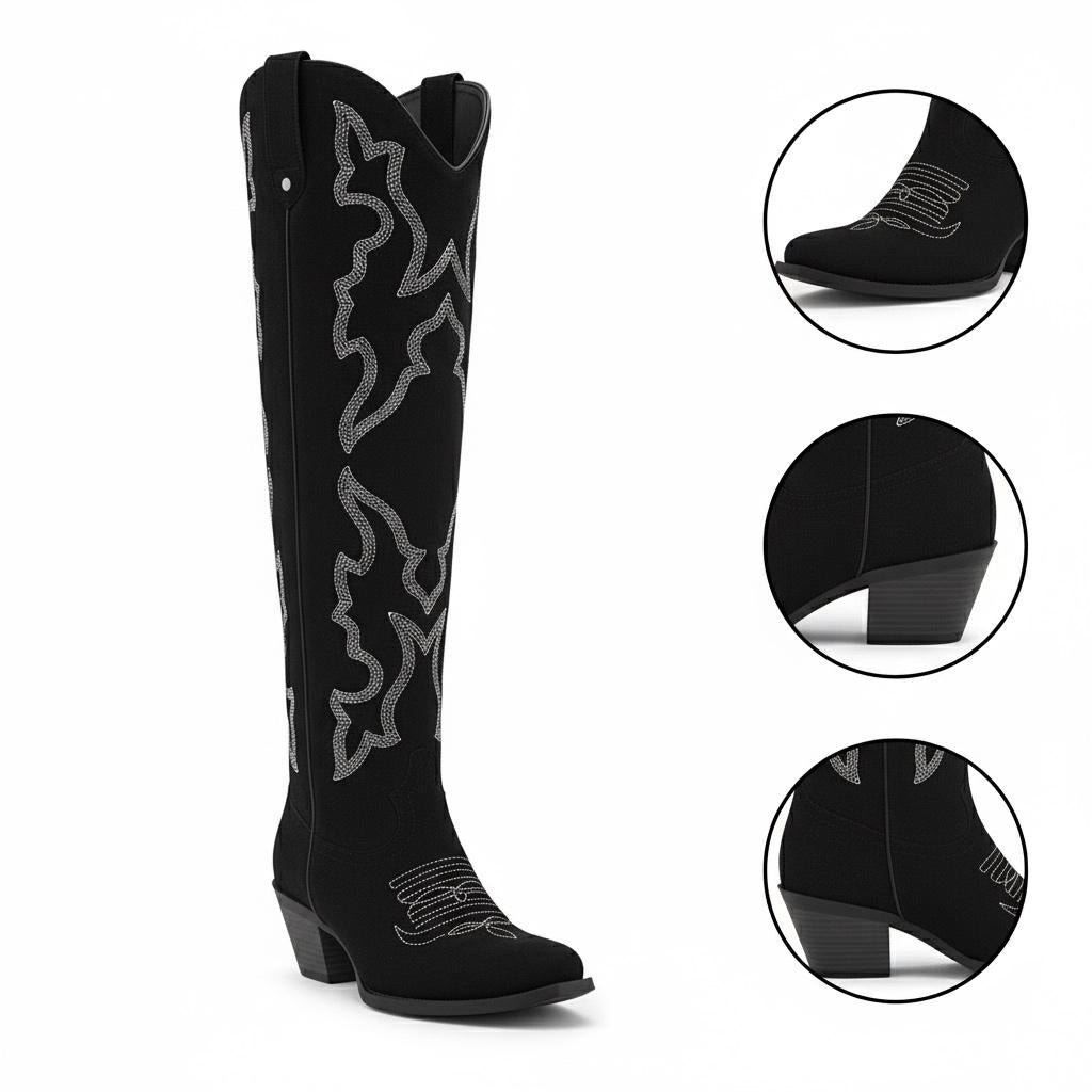 Introducing our Western Knee-High Boots, meticulously crafted for the modern woman who values both style and comfort. Made from durable faux suede leather and enhanced with elegant embroidery, these boots showcase a unique craftsmanship that perfectly combines fashion with functionality, ensuring you make a statement wherever you go.