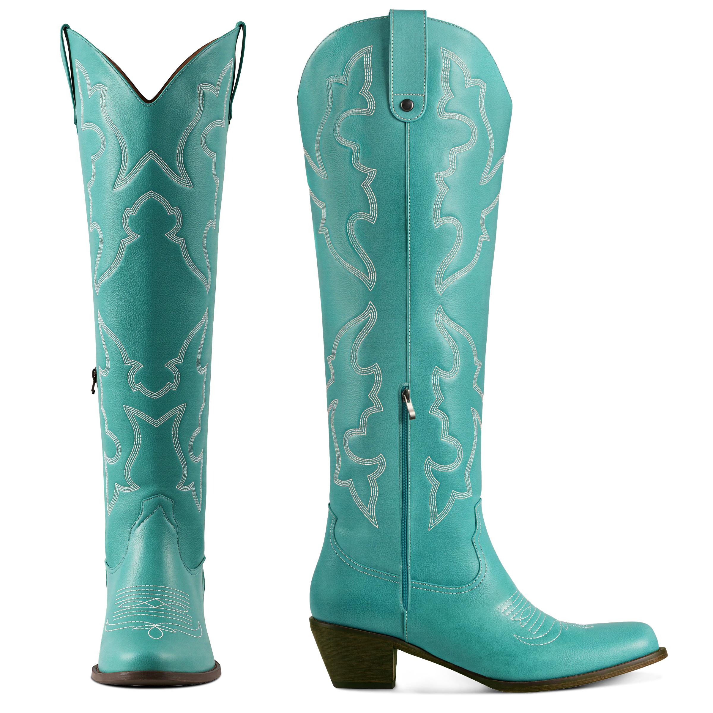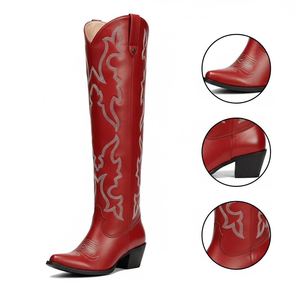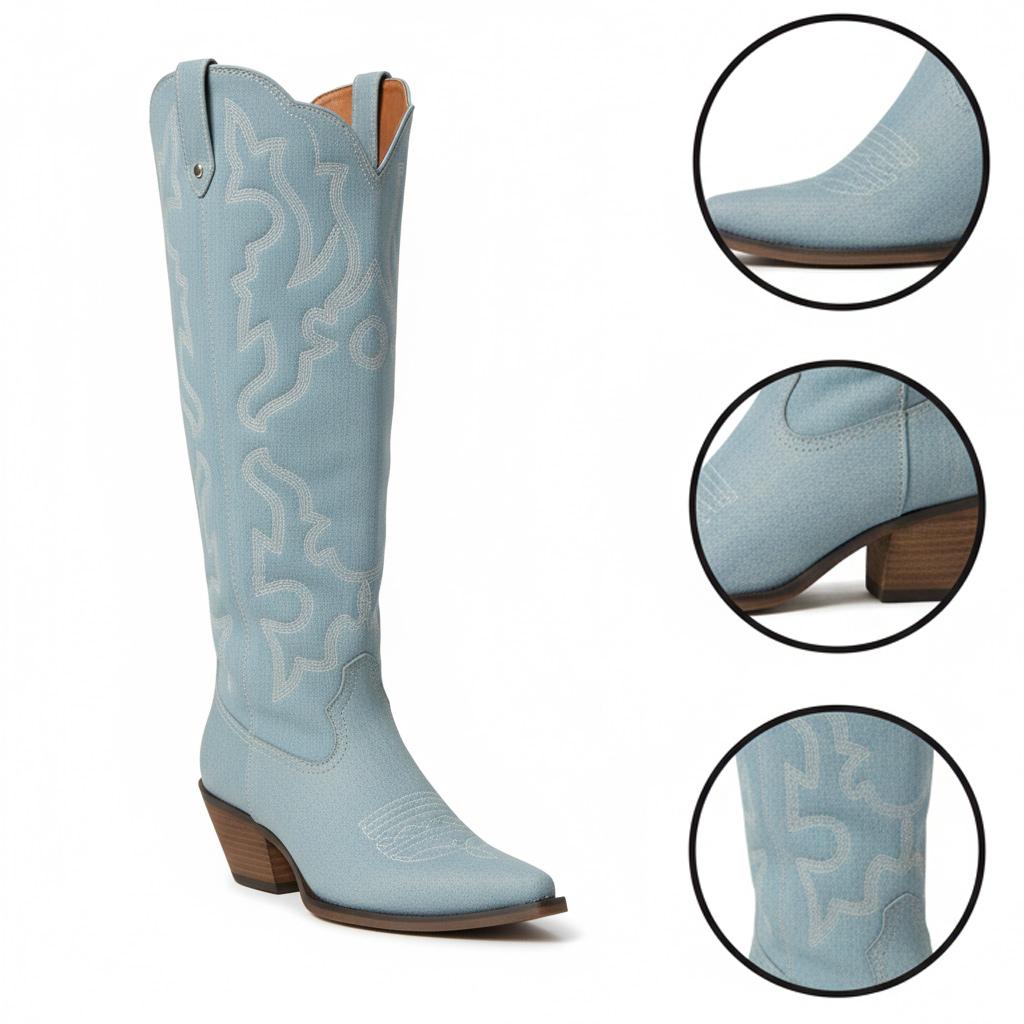 Introducing our Western Knee-High Boots, meticulously crafted for the modern woman who values both style and comfort. Made from durable faux suede leather and enhanced with elegant embroidery, these boots showcase a unique craftsmanship that perfectly combines fashion with functionality, ensuring you make a statement wherever you go.
