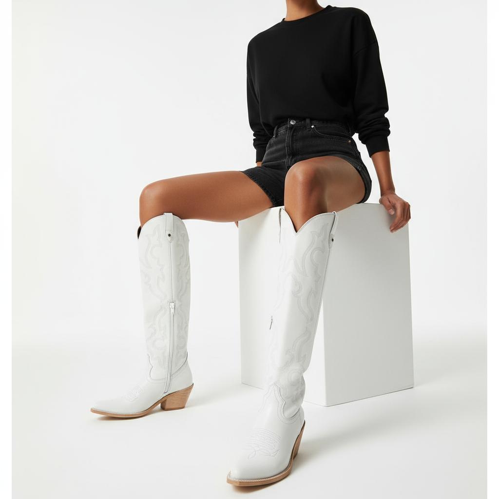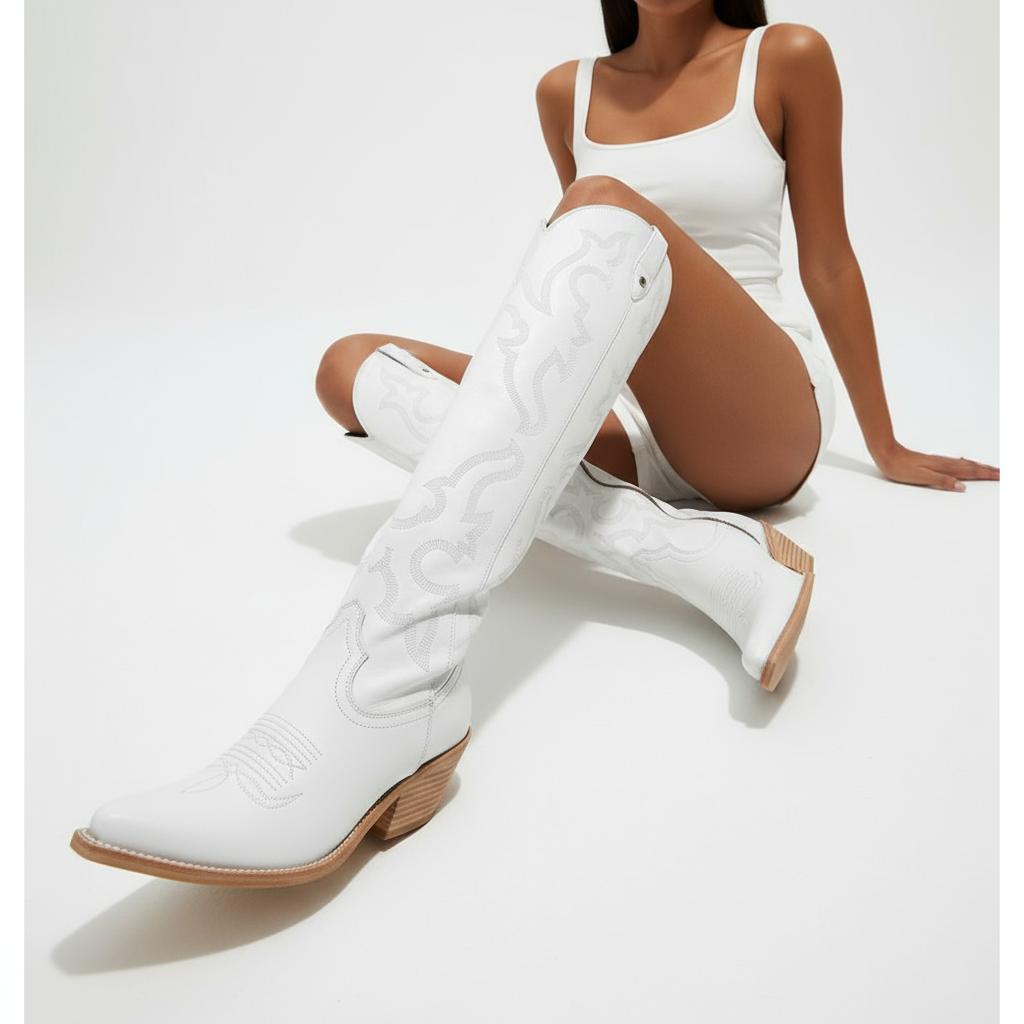 Step into style and comfort with our Western Knee-High Boots—the perfect addition to your footwear collection.