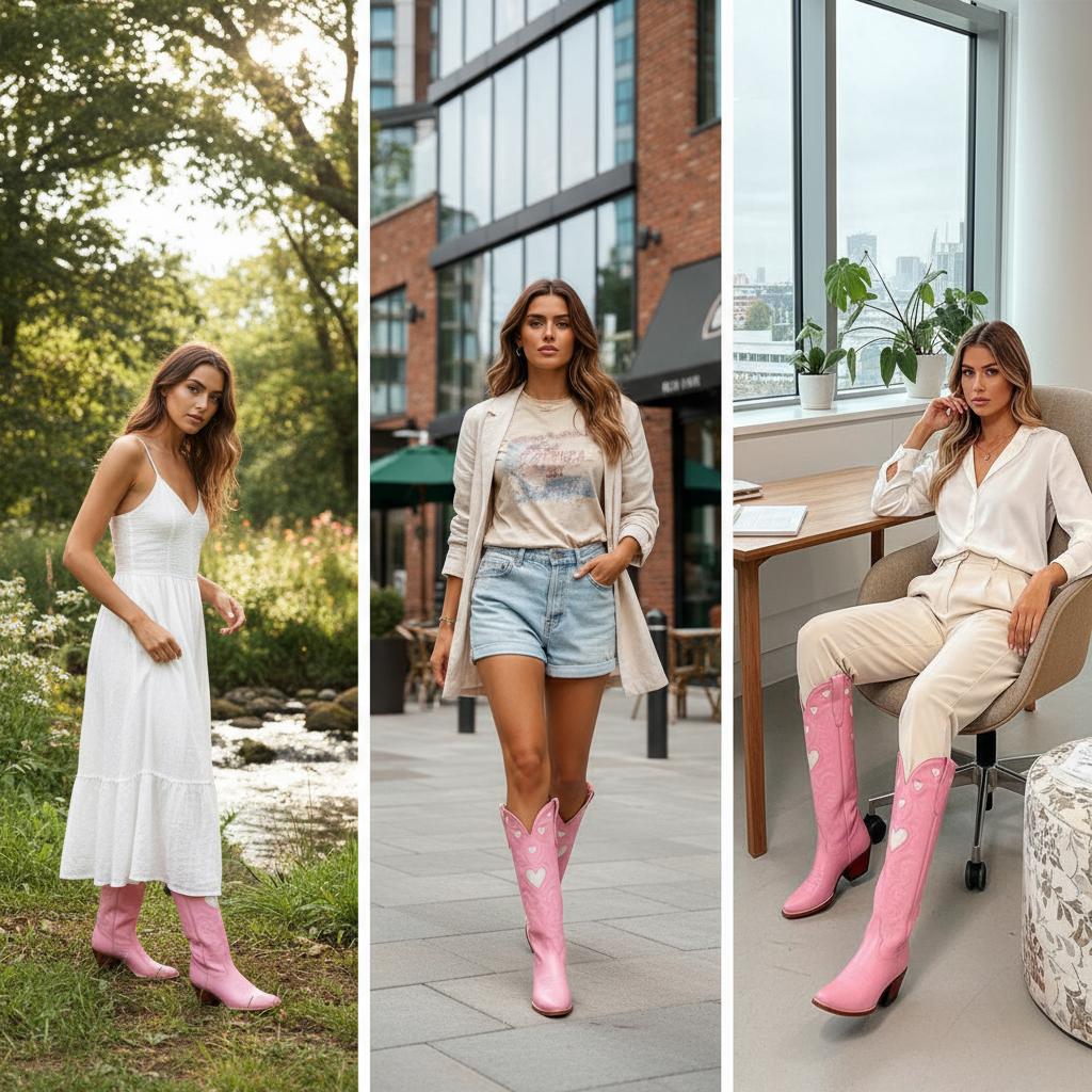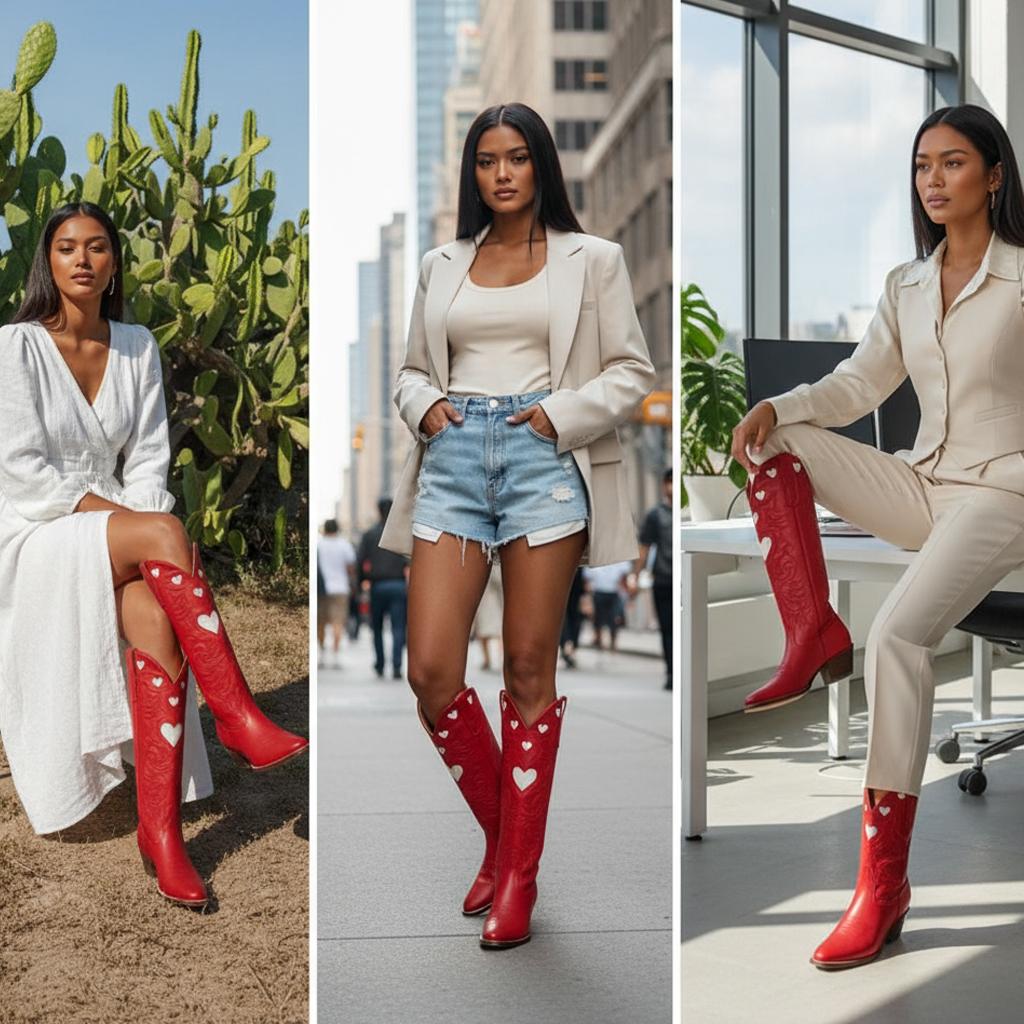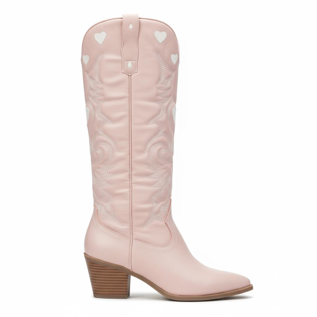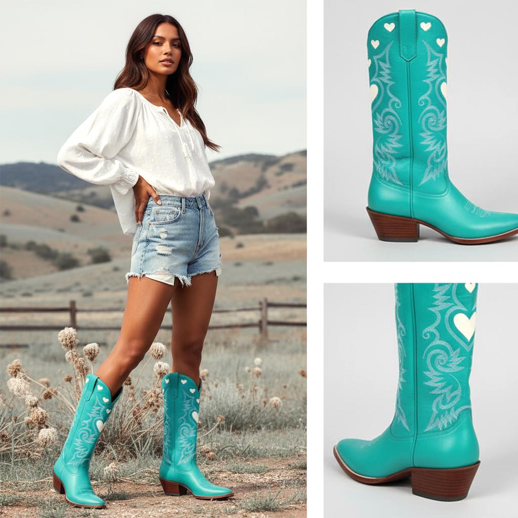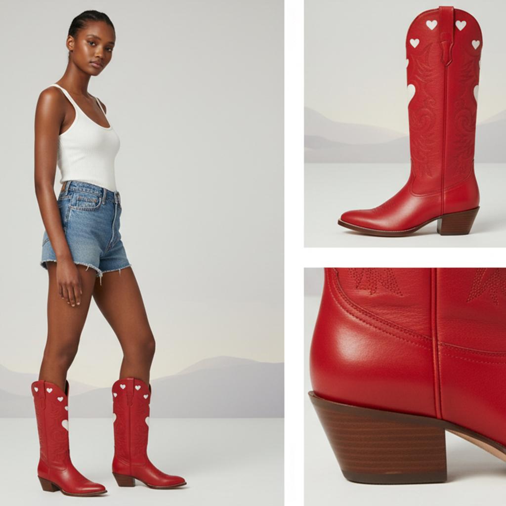 Elevate your footwear game with our Western Knee High Boots, uniquely designed for comfort and style. Crafted from genuine full-grain leather, these boots showcase exquisite hand-stitched embroidery that adds a touch of femininity with charming sweet pink hearts, ensuring you stand out in any crowd.