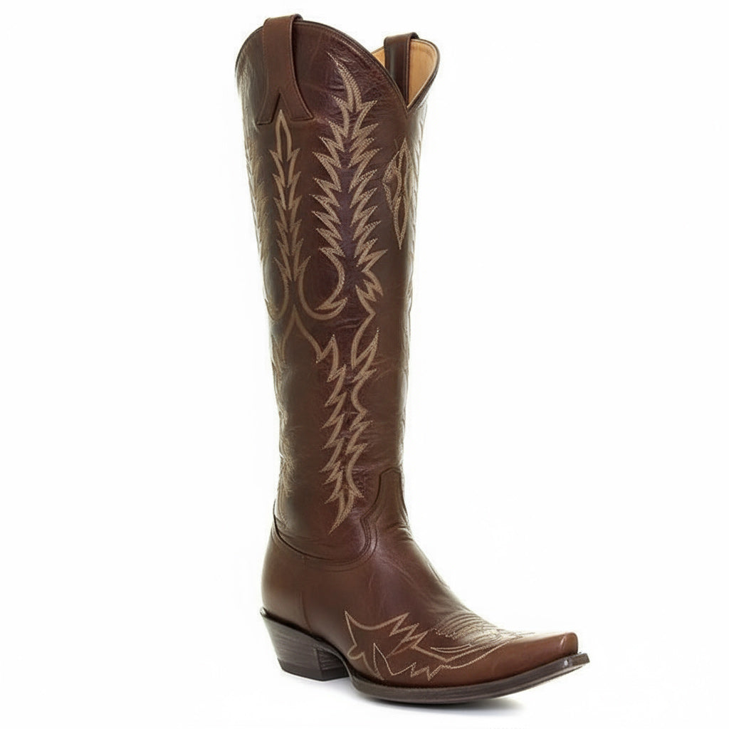 Step into a world where handcrafted precision meets timeless design with our stunning Western Cowgirl Boots. Crafted with unique attention to detail, these knee-high boots showcase exquisite embroidery that elevates your ensemble while ensuring you stand out in any setting. The fusion of artistry and durability makes these boots a coveted addition to your wardrobe.
