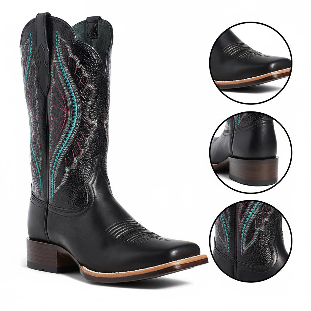 Introducing our exquisite Western Cowgirl Boots, a perfect blend of handcrafted artistry and modern design. Each pair is crafted with a focus on unique craftsmanship, making them a standout choice for the fashion-conscious. The full-grain leather exterior is not only visually stunning but also built to last, ensuring you enjoy the elegance and durability for years to come.