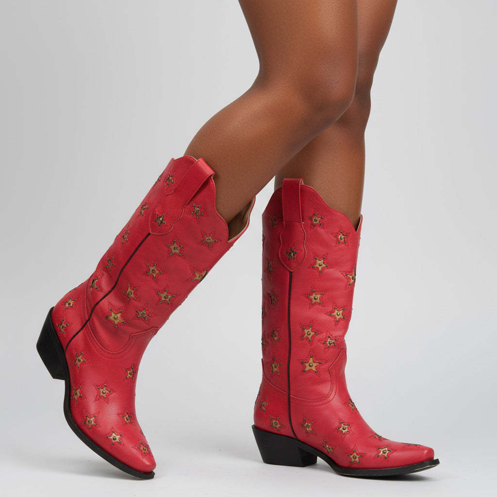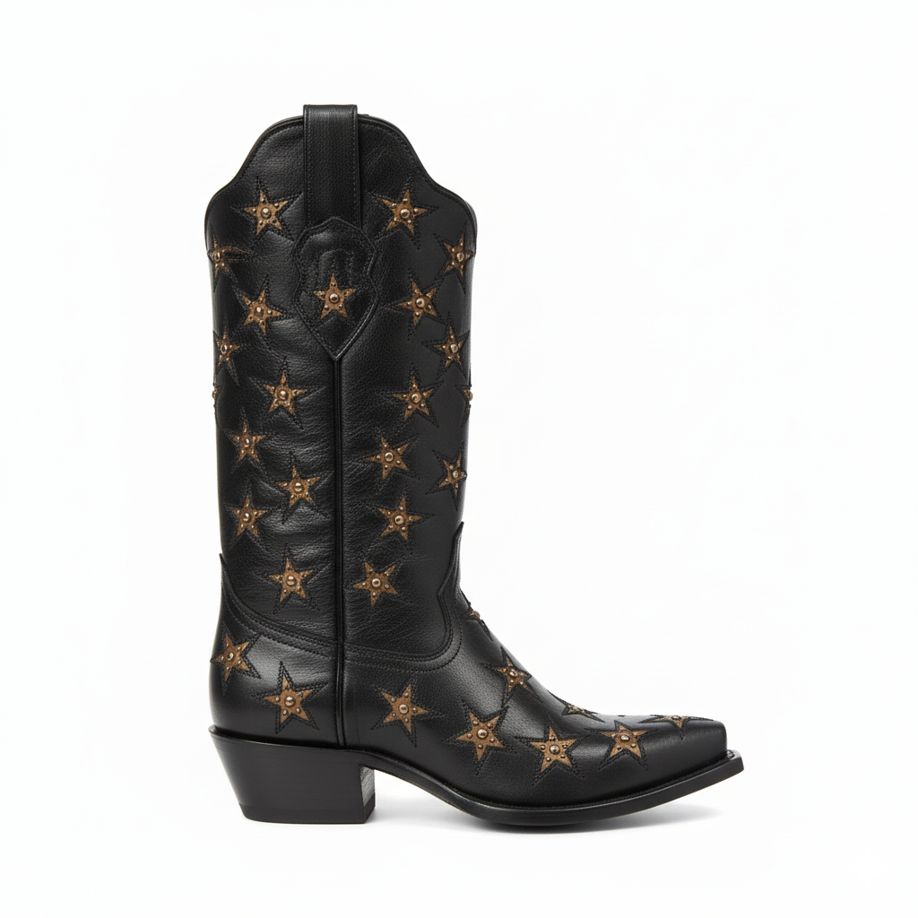Experience the perfect blend of style and durability with our Western Mid Calf Boots for Women. Handcrafted from premium full-grain leather, these boots showcase unique embroidery and studded details that make them a standout addition to your wardrobe. Each pair is expertly hand-stitched and hand-finished to ensure that you receive a product that is built to last.