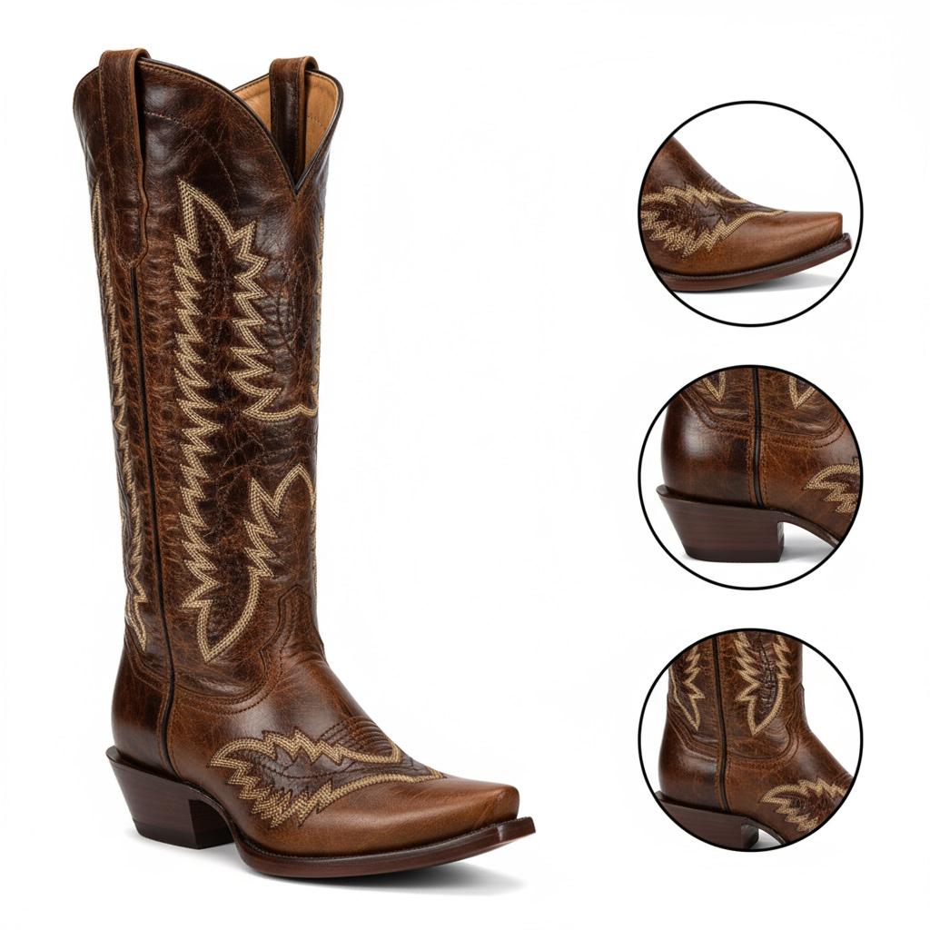 Introducing our handcrafted Western Cowgirl Boots, a perfect blend of unique craftsmanship and timeless design. These mid-calf boots are made from high-quality genuine leather, ensuring an elegant look that lasts. With meticulous attention to detail, our boots are not just footwear, but a statement of style.