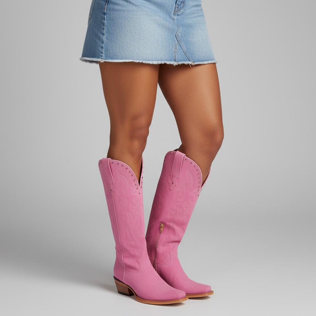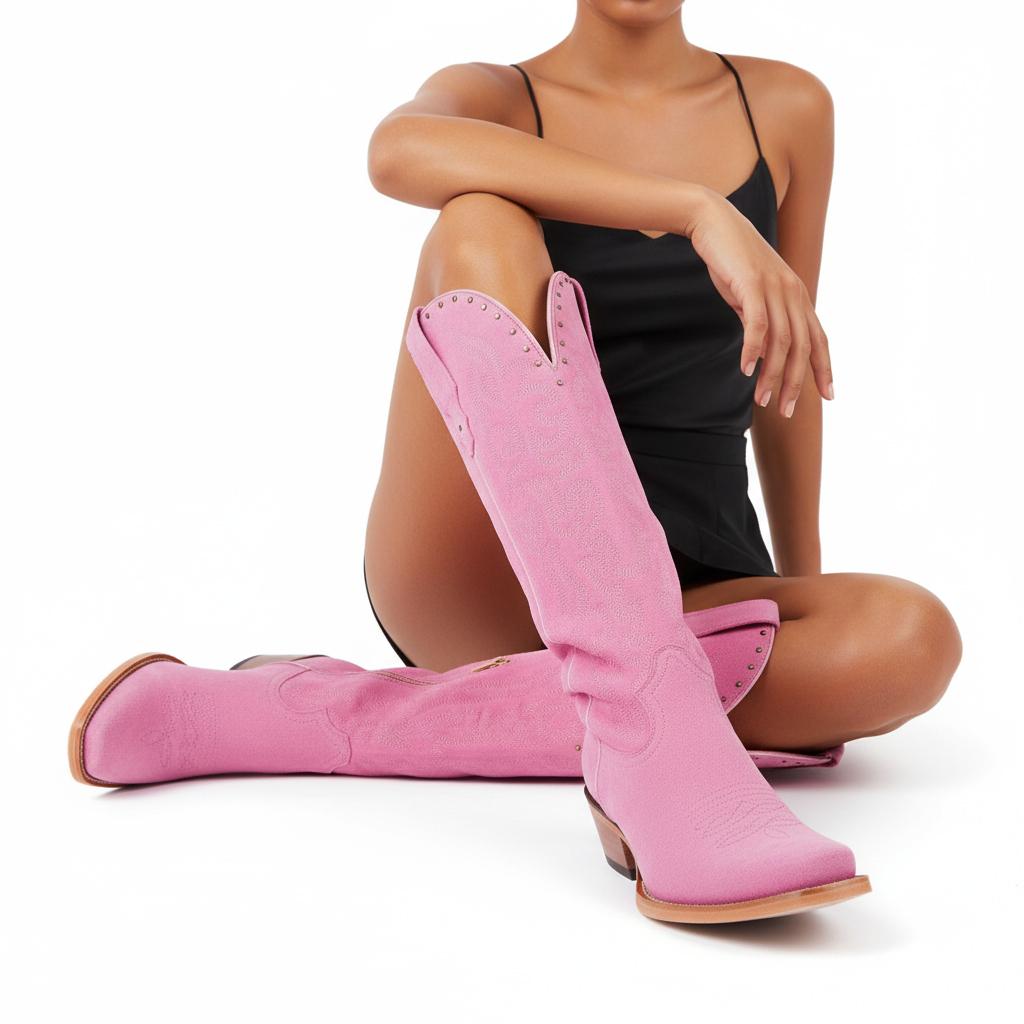 Exquisite Handcrafted Design: Elevate your fashion game with our stunning mid-calf Western boots, meticulously handcrafted using soft faux suede and adorned with intricate tonal embroidery and decorative rivets. Each pair is a testament to unique craftsmanship, designed to catch the eye and turn heads.