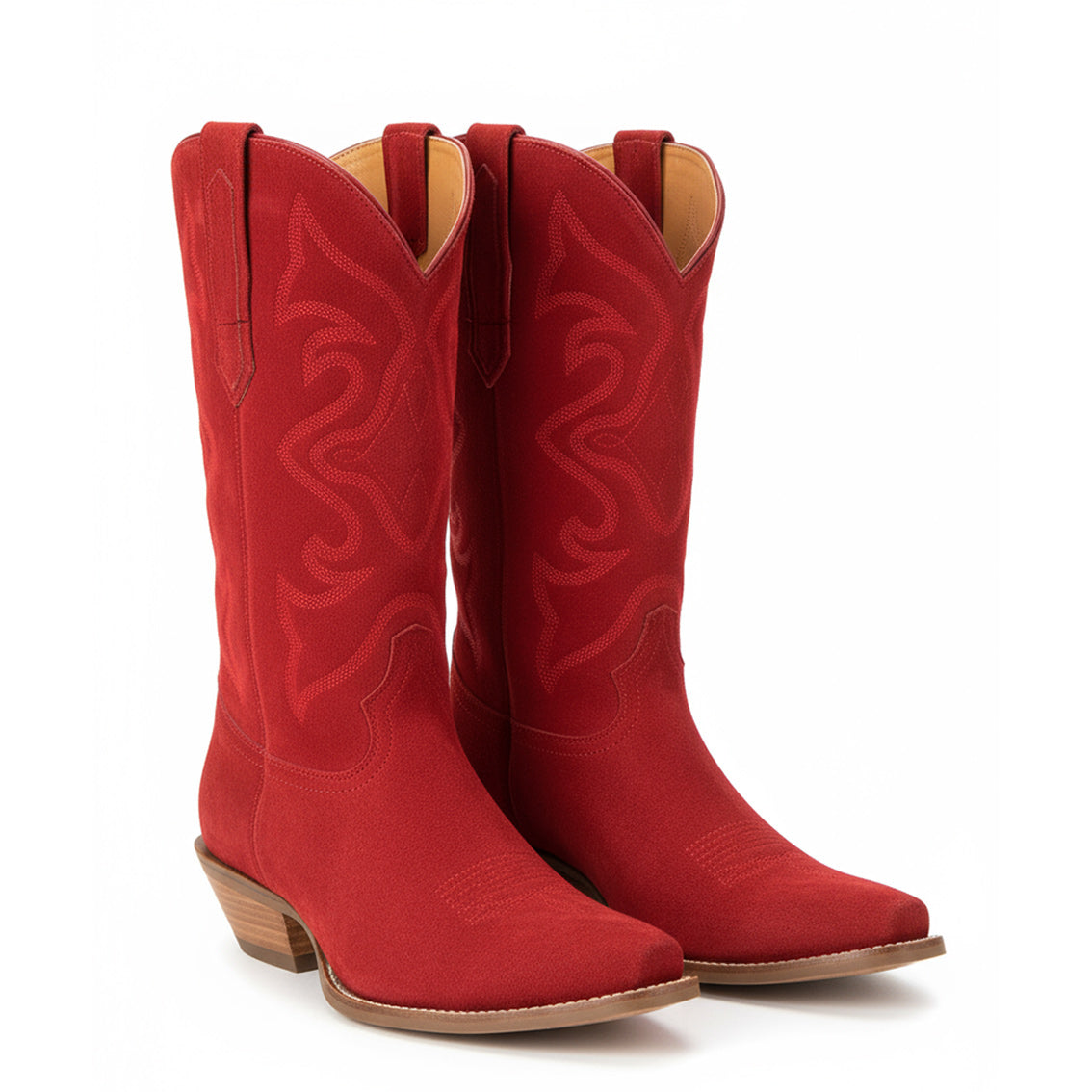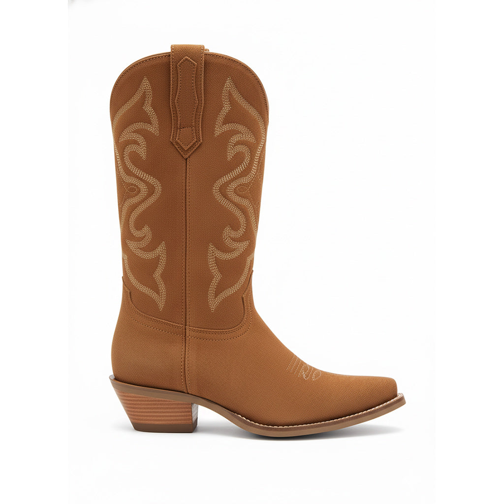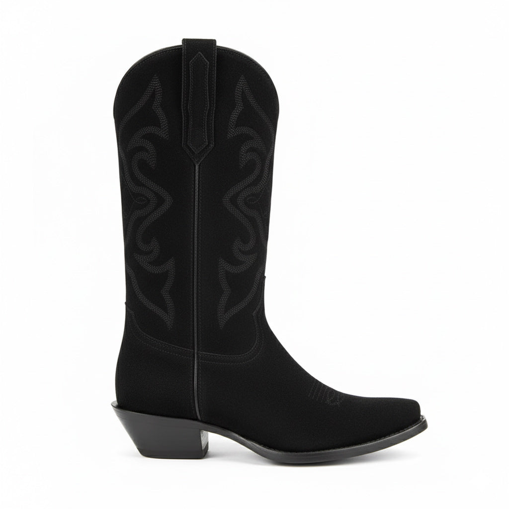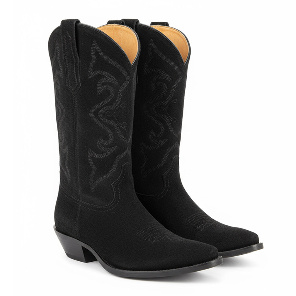 Introducing our Western Mid Calf Boots with a chunky heel and snip toe design, crafted to elevate your footwear collection with a unique touch. Made from high-quality faux suede and adorned with intricate embroidery, these boots offer a stylish yet practical addition to your wardrobe, perfect for any season.