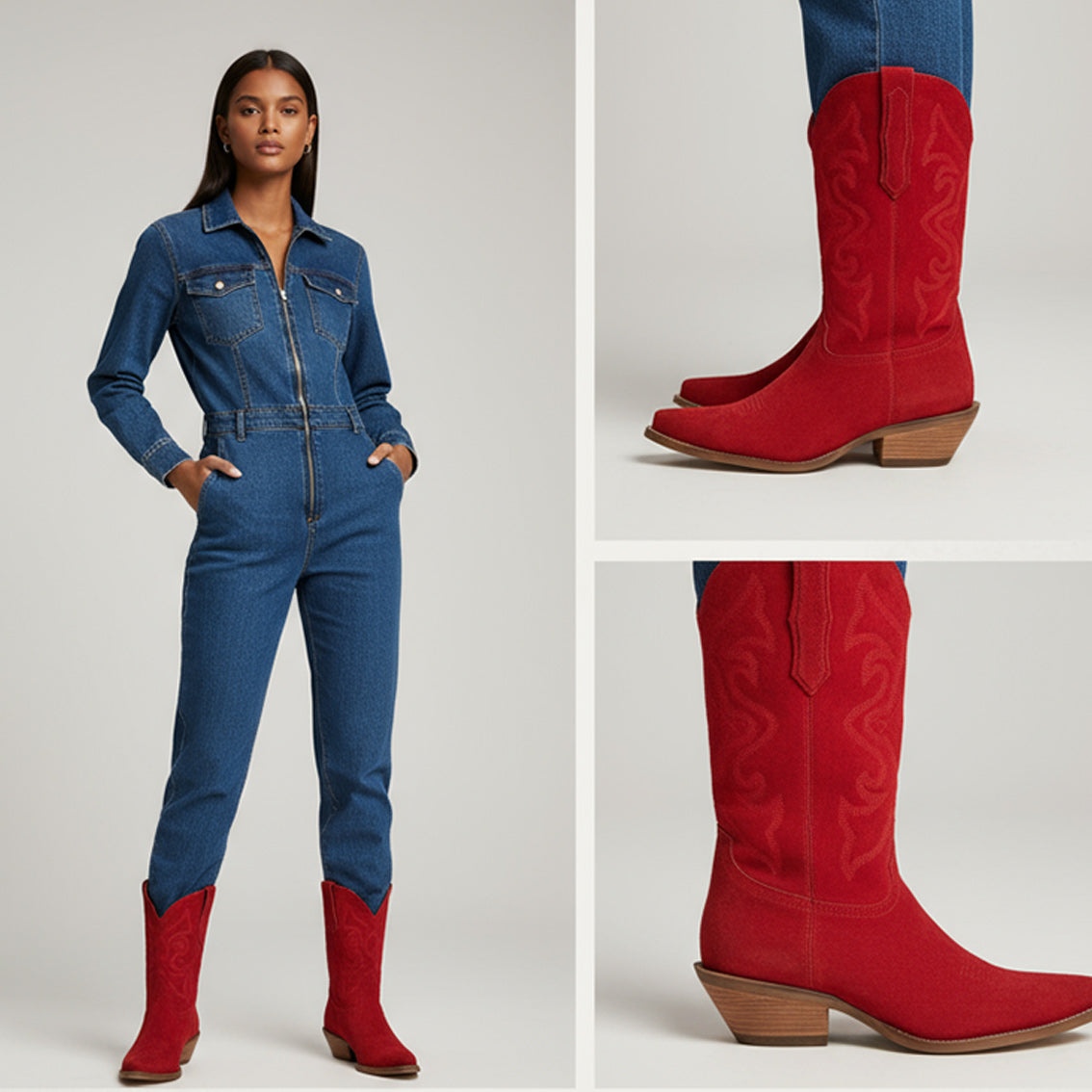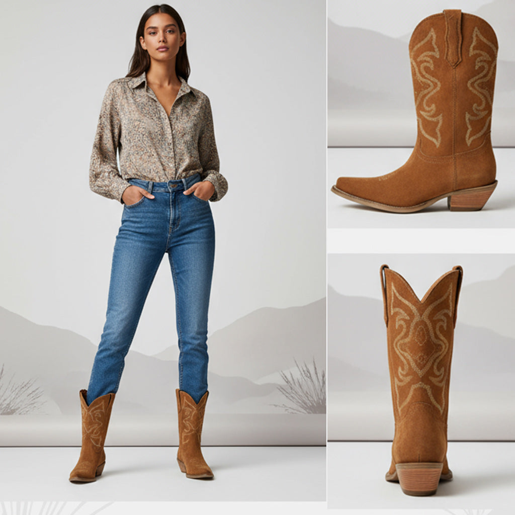 5. Styling Suggestions: Pair these boots with your favorite jeans for a casual day out or dress them up with a flowy skirt for a night on the town. Their rich texture and eye-catching embroidery allow them to enhance any outfit effortlessly.