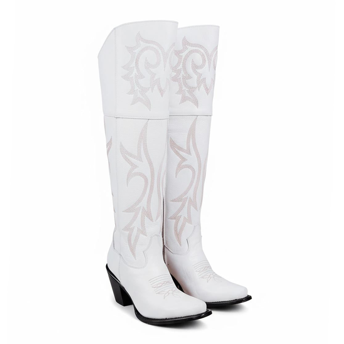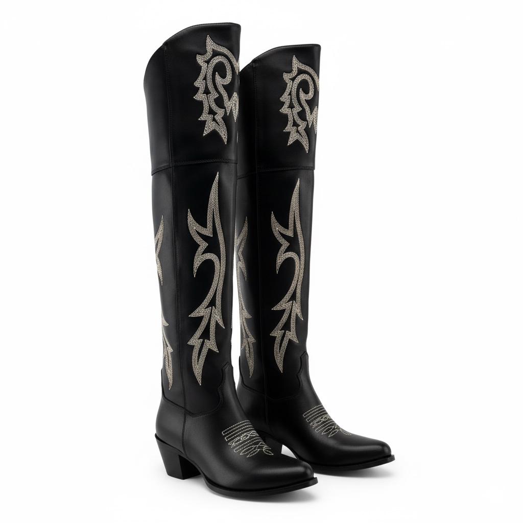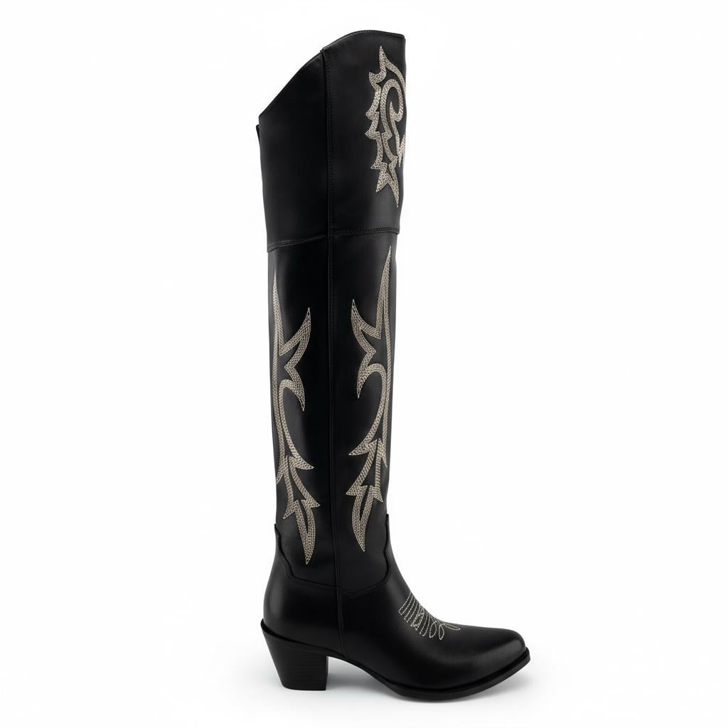 Experience the perfect blend of fashion and function with our Western Over-the-Knee Boots. Crafted from premium full-grain leather, these boots feature a unique embroidered distressed design that sets you apart from the crowd. Each pair is expertly handcrafted, ensuring meticulous attention to detail and a timeless aesthetic.