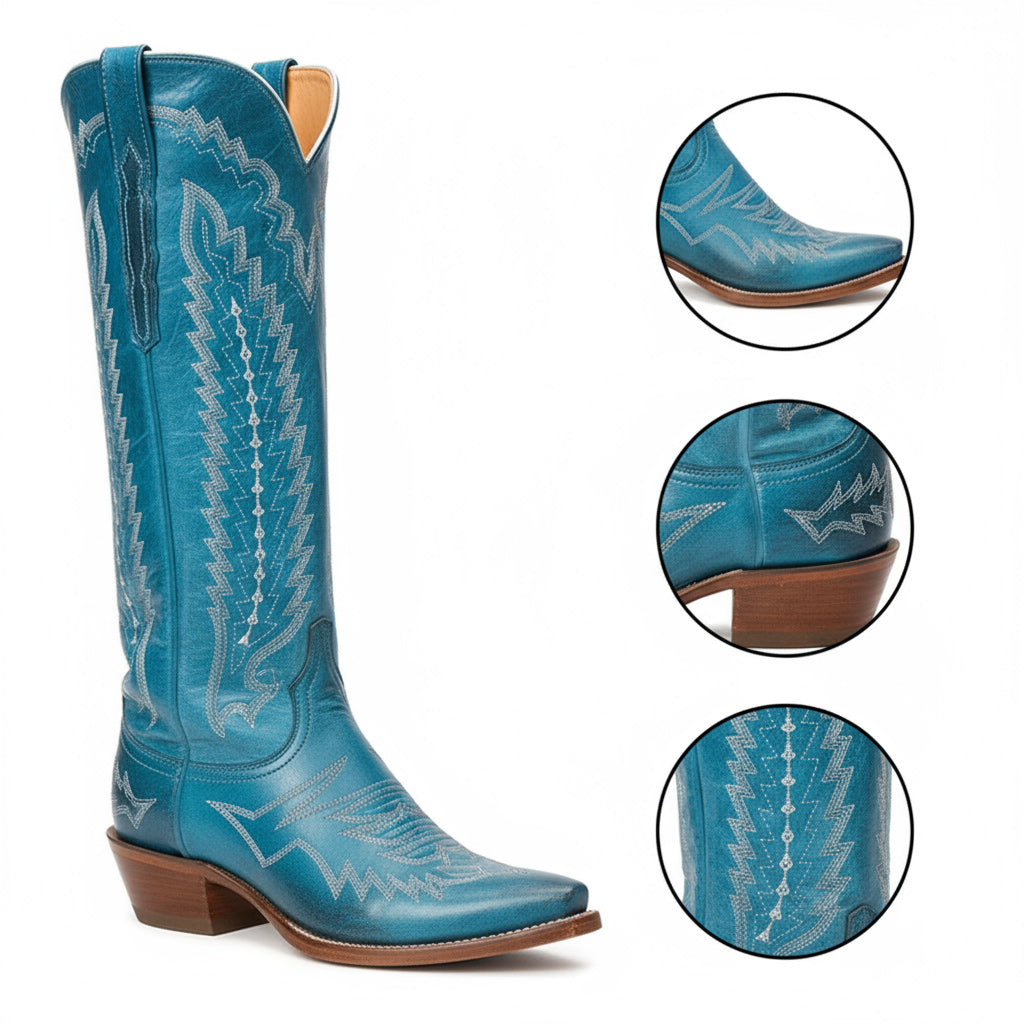 Experience the perfect blend of style and comfort with our Western Cowgirl Boots. Crafted with a unique focus on detail, these boots feature handcrafted precision that reflects an exclusive design philosophy. Each pair is expertly stitched and hand-finished to ensure durability and an eye-catching aesthetic.