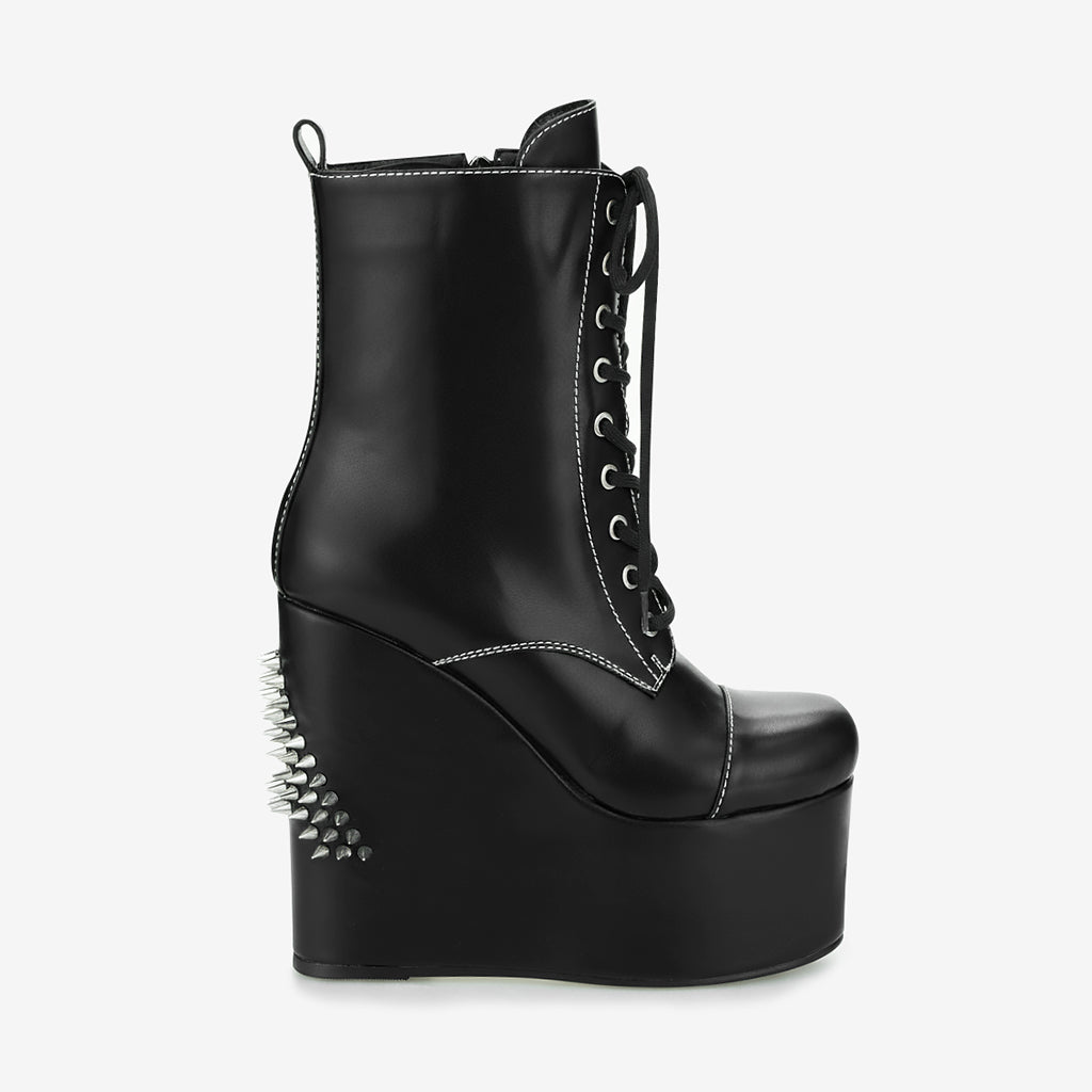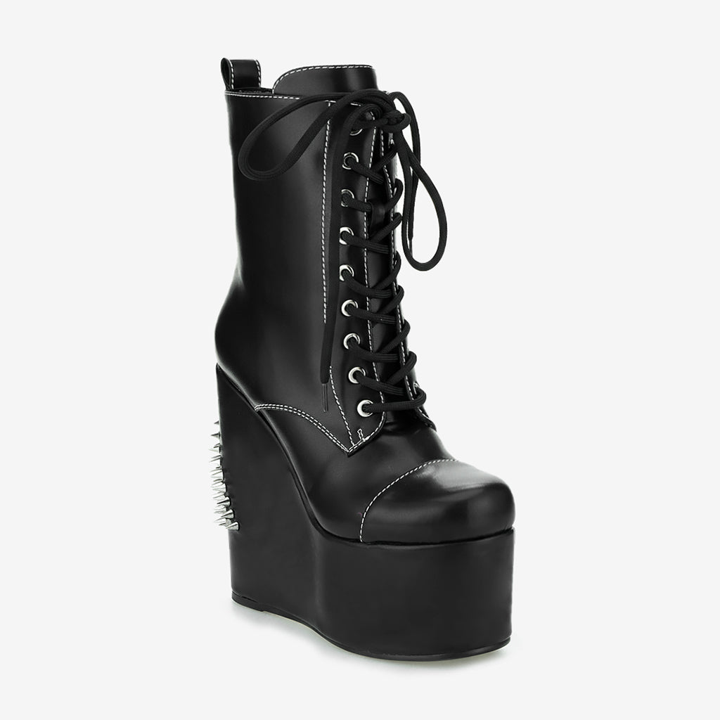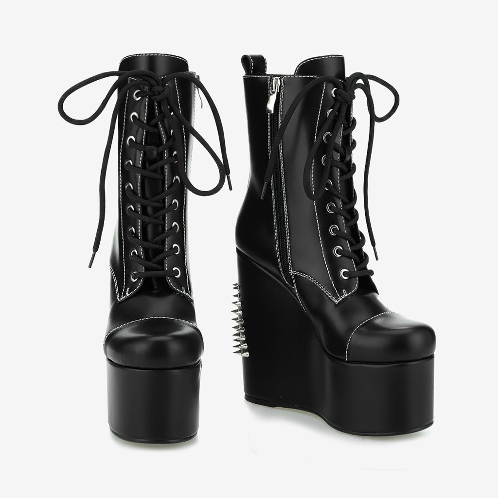 Discover unparalleled quality with our premium PU-made Platform ankle boots, designed for the bold woman ready to make a statement. The unique blend of artistry and craftsmanship ensures that every pair is a standout addition to your wardrobe. The eye-catching geometric patterns and bold studs add an exclusive flair that elevates any outfit.