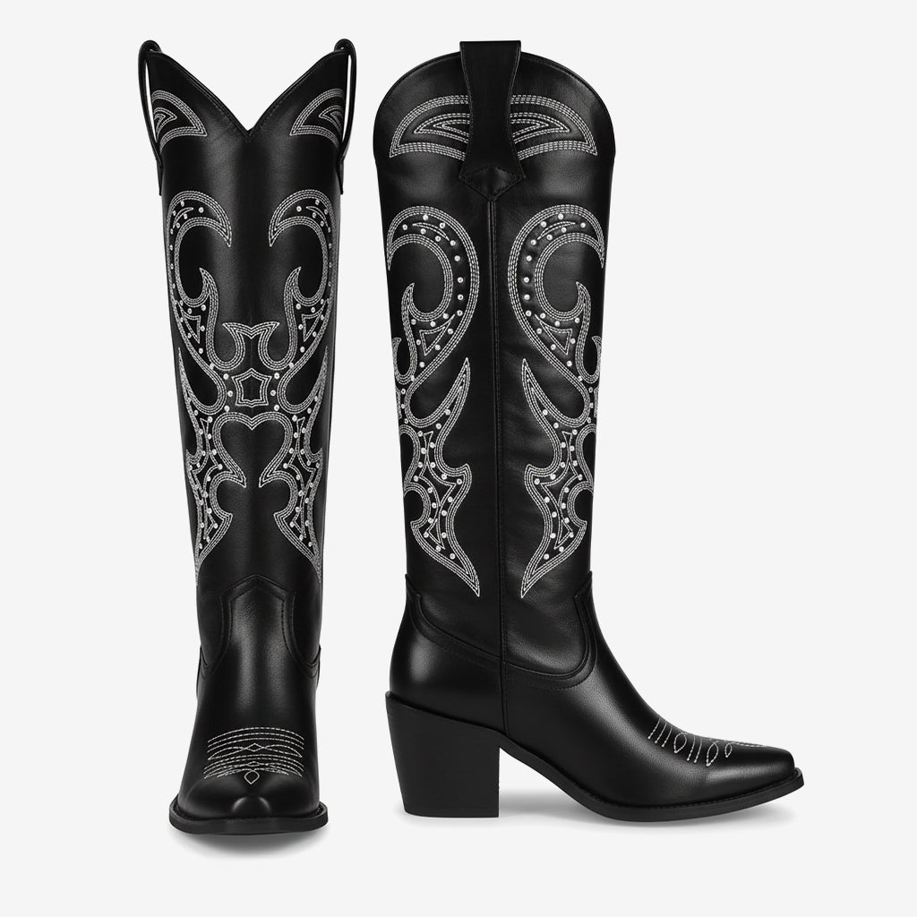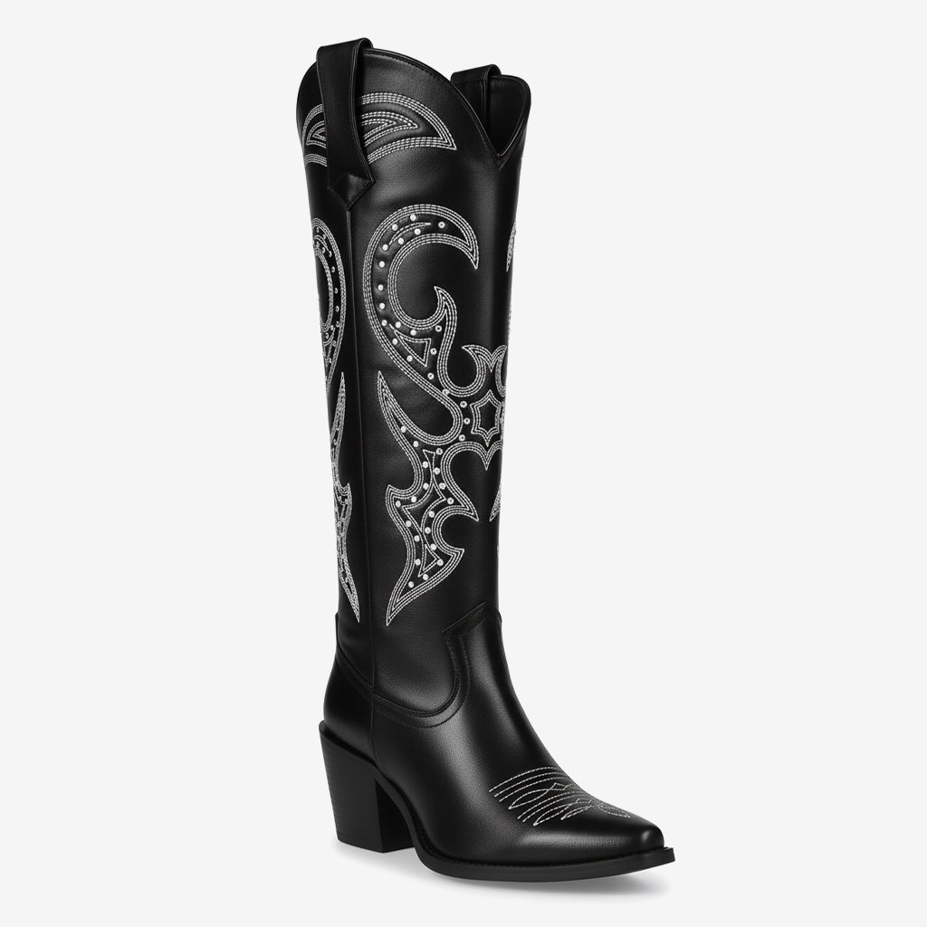 Discover the perfect blend of comfort and style with our Western Style Knee High Boots. Expertly crafted from premium full-grain leather, these boots are designed with durability and elegance in mind. The chic rhinestone and embroidery accents add a unique flair, making them a standout addition to your wardrobe.
