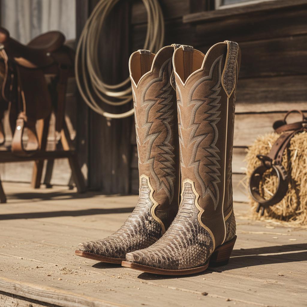 Embrace your adventurous spirit with our Western-style knee-high boots, meticulously crafted to combine comfort and unique design. Featuring a striking animal pattern and intricate embroidery, these boots are not just footwear; they are a statement of fashion. The visually captivating snake print adds a modern twist to a classic style, making them perfect for both casual outings and elegant parties. Designed for all-day wear, these boots offer exceptional comfort and durability. The soft and breathable inner lining, made from high-quality synthetic leather, ensures your feet stay cozy while the robust rubber sole provides reliable support and shock absorption. The rubber outsole is specifically engineered to deliver excellent grip, enabling you to walk confidently on various surfaces. Whether you're dancing the night away or strolling through the city, these boots provide the stability you need for daily adventures. The boots feature a knee-high design with a sturdy block heel, striking a perfect balance between style and practicality. Tailored to fit most foot sizes comfortably, they are ideal for everyday wear across all seasons. Pair them with your favorite denim for a laid-back look or dress them up with a flowing dress for an evening out. Perfect for travel, leisure, parties, or dance events, these boots seamlessly elevate any outfit, ensuring you remain the center of attention no matter the occasion.