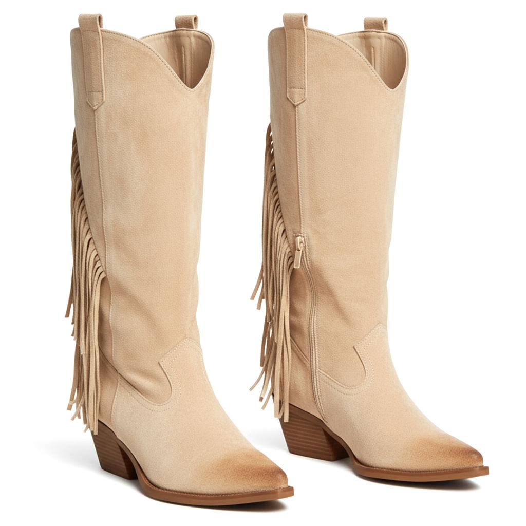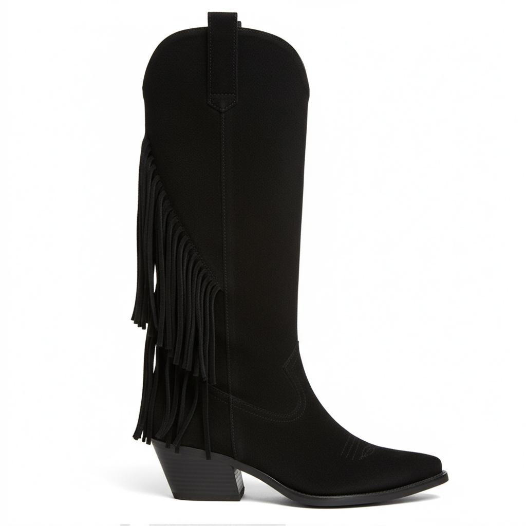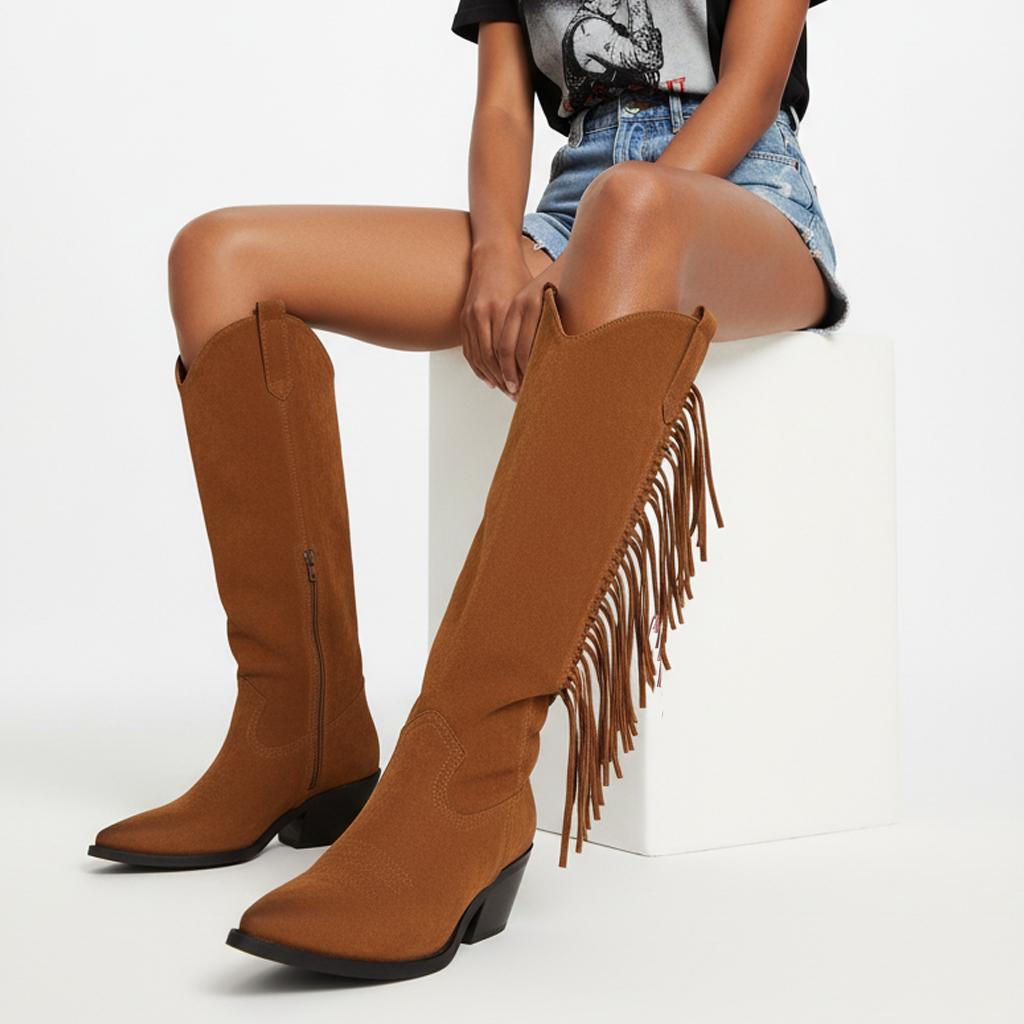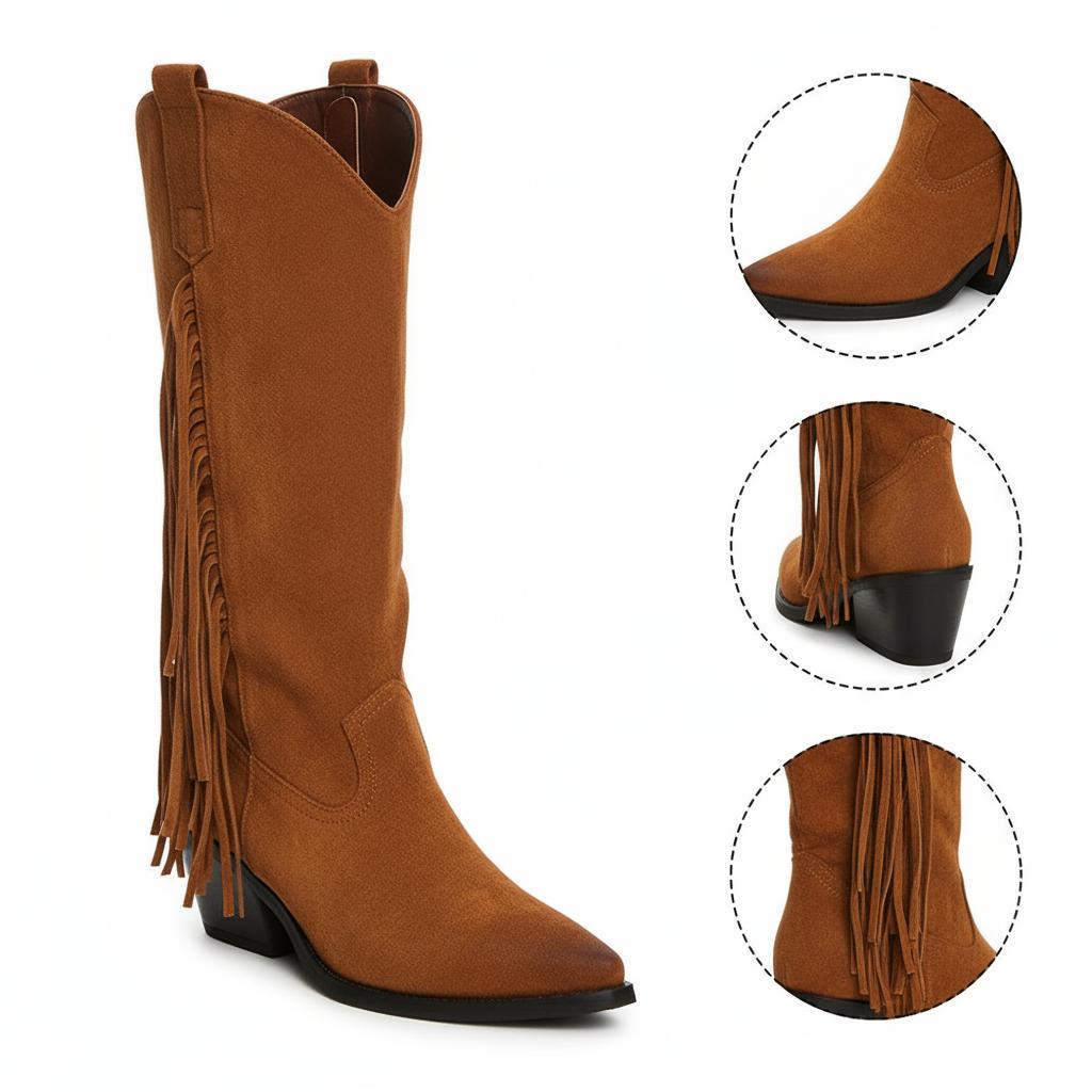 Introducing our Western Style Mid-Calf Boots with Tassels – where unique craftsmanship meets everyday comfort. These boots are expertly handcrafted with attention to detail, featuring a chic design that blends style and functionality. The distressed faux suede not only enhances vibrancy but also adds a touch of rustic elegance.