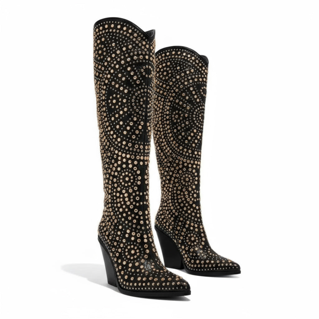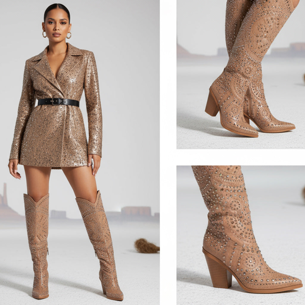 Experience unparalleled comfort and timeless craftsmanship with our stunning mid-calf cowboy boots. Made from high-quality PU and lined with breathable artificial leather, these boots are designed for the modern woman who values fashion and functionality. The unique studded detailing adds an exclusive touch, making each pair a statement piece perfect for any wardrobe.