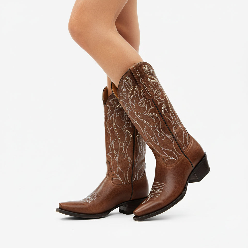 Step into style and comfort with our Western Vintage Floral Embroidered Mid-Calf Cowboy Boots. Perfect for fashion-forward women seeking a unique addition to their wardrobe!