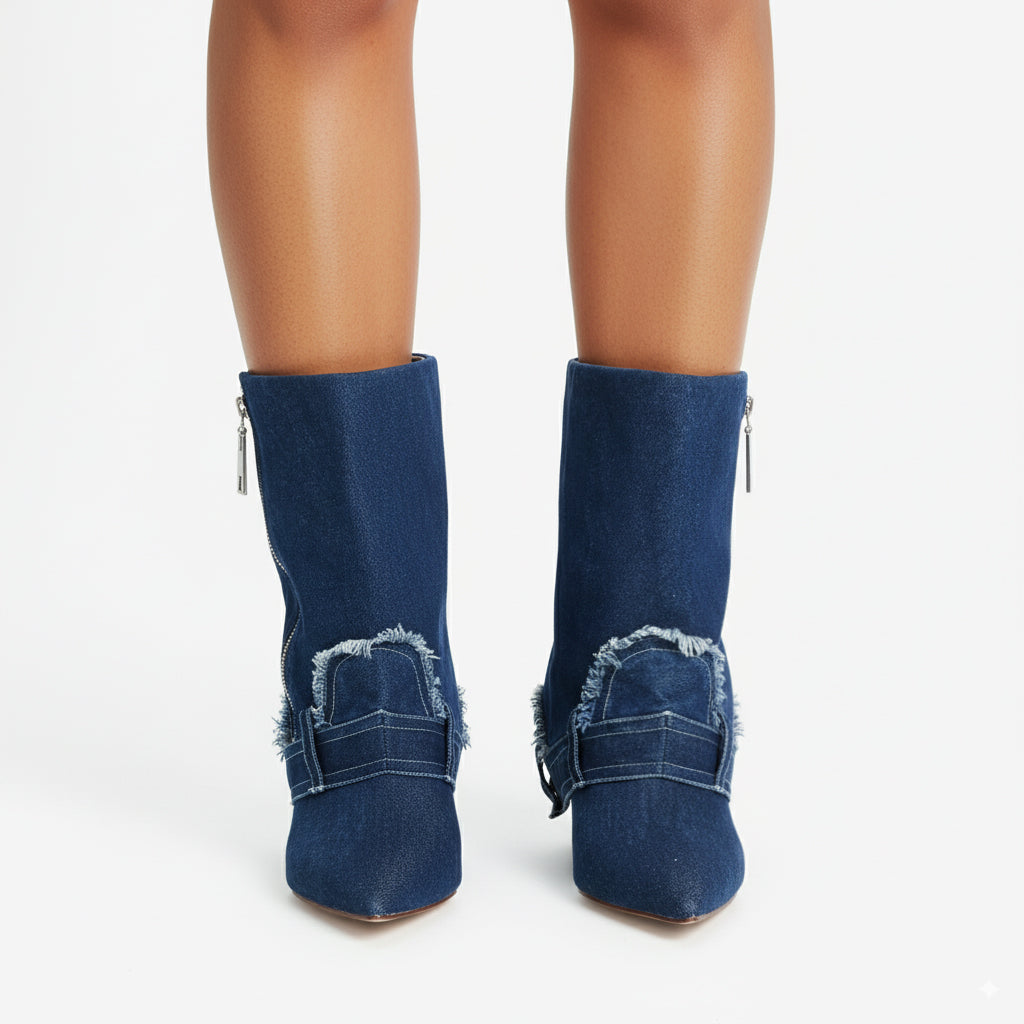 Unleash Your Style with Our Vintage-Inspired Ankle Boots Experience the perfect blend of luxury and comfort with our stunning ankle boots crafted from high-quality denim. The unique foldable design and sharp pointed toe not only elevate your style but also provide an exclusive fashion statement. Featuring a chic wedge heel, these boots redefine casual elegance. Comfort and Durability Step into comfort with our soft artificial fiber lining that cushions your feet all day long. The lightweight polyurethane sole ensures lasting durability, allowing you to enjoy every moment without compromising on support or flexibility. Exceptional Traction Designed to keep you stable, the slip-resistant sole delivers superior grip, making these boots perfect for any occasion—be it a casual outing or a lively evening event. You can confidently pair them with your favorite outfits, knowing they’ll keep you grounded and stylish. Perfect Fit and Sizing With a heel height of 7cm and a height of 20cm, our ankle boots provide an elegant silhouette that flatters all leg shapes. The adjustable calf circumference ranges from 36cm to 38cm, ensuring a tailored fit for everyone. Versatile Fashion Whether you're dressing up for a formal event or looking to add a trendy touch to your casual wear, these ankle boots are your go-to choice. Pair them with dresses, skirts, or tailored trousers for a chic and sophisticated look that stands out in any crowd.